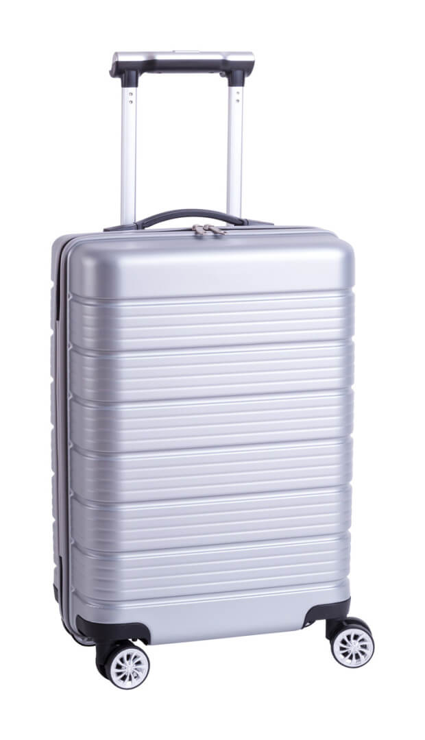 Pevný plastový kufr se 4 otočnými kolečky, teleskopickou rukojetí, držákem na tablet a TSA zámkem. Vč. přihrádky na power banku a USB výstupem. Bez power banky.