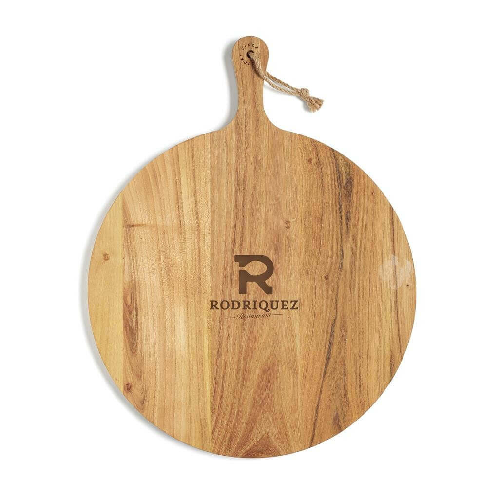 Vysoce kvalitní kulaté prkénko, které lze díky velkým rozměrům a dekorativnímu designu použít i k servírování. Užitečná rukojeť dále usnadňuje manipulaci a podávání. Je vyrobeno z teakového dřeva s certifikátem FSC a má krásný zlatavý až středně hnědý povrch, který časem tmavne. Vysoký obsah oleje zajišťuje silnou ochranu proti hnilobě a udržuje ho po dlouhou dobu v dobrém stavu.