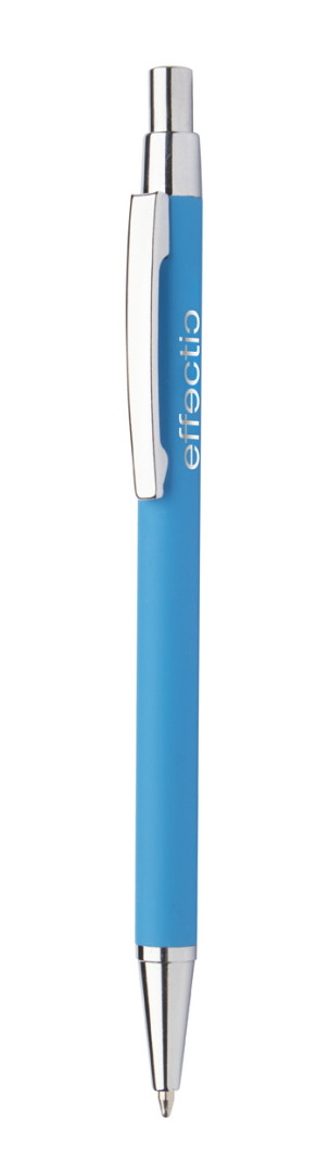 Hliníkové kuličkové pero s pogumovanou úpravou a modrou náplní. Speciální povrch pro zrcadlový laser.
