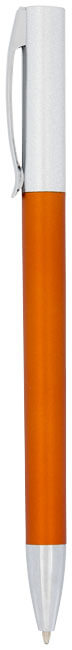 Kuličkové pero s otočným mechanismem, s metalizovaným klipem a metalizovanou povrchovou úpravou. Plast.Typy potlačí/dekor:: Tamponovy tisk, Rotacni sitotisk, Digitální tisk Farba Pantone: 1505CFarba HEX: FF7F00Farba tuhy:: Blue