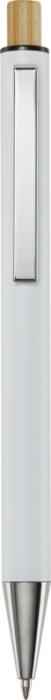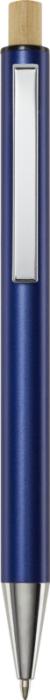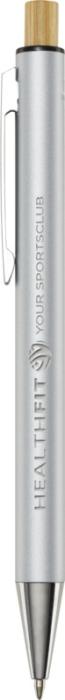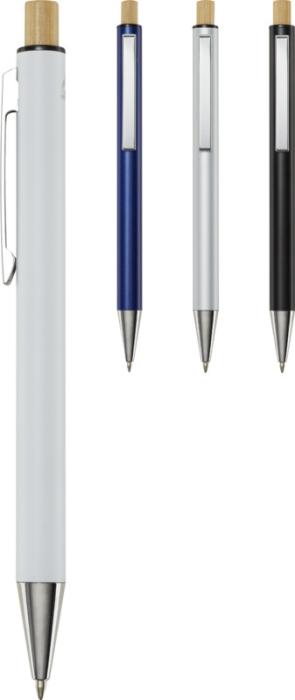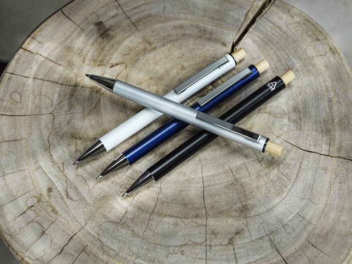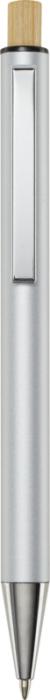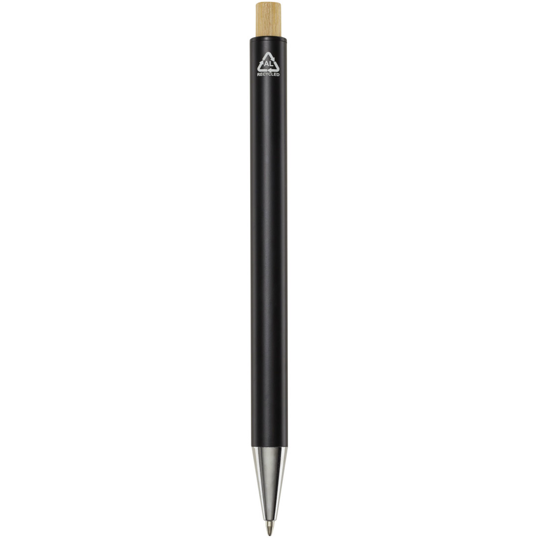 Kuličkové pero Cyrus je vyrobeno z recyklovaného hliníku, což vyžaduje méně energie než výroba hliníku z nerostných surovin. Snižuje také množství odpadu na skládkách a pomáhá šetřit přírodní zdroje s cílem snížit emise skleníkových plynů. Tlačítko je vyrobeno z bambusu. Barva inkoustu: Černá. Délka psaní: 800 metrů. Rozměr hrotu: 1,00 mm.