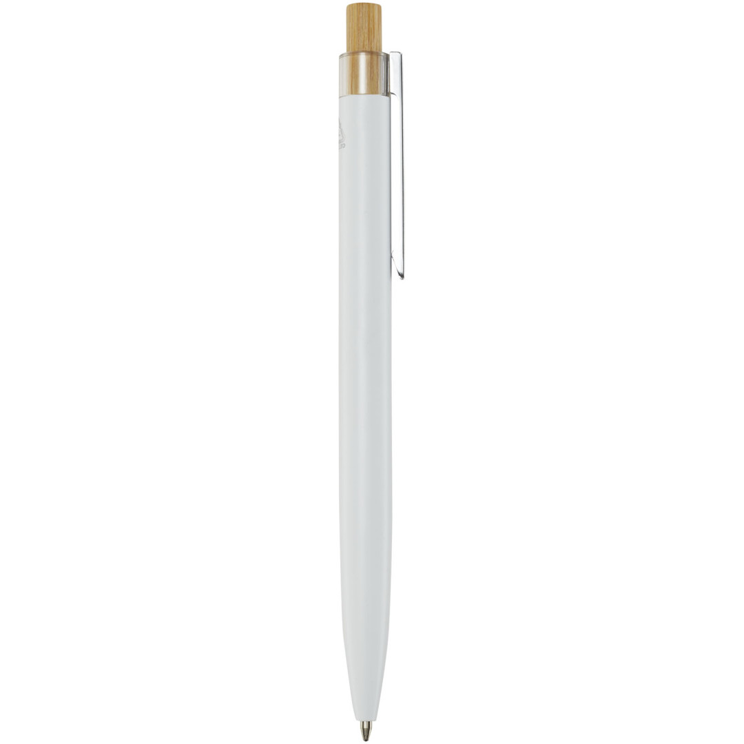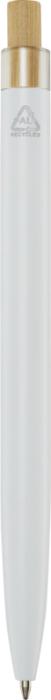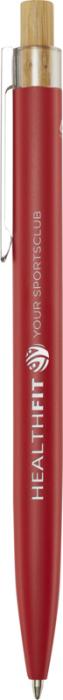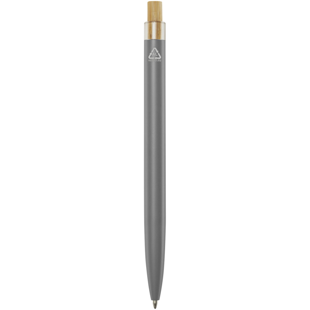 Kuličkové pero Nooshin je vyrobeno z recyklovaného hliníku, což vyžaduje méně energie než výroba hliníku z nerostných surovin. Snižuje také množství odpadu na skládkách a pomáhá šetřit přírodní zdroje s cílem snížit emise skleníkových plynů. Tlačítko je vyrobeno z bambusu. Barva inkoustu: Černá. Délka psaní: 800 metrů. Rozměr hrotu: 1,00 mm.
