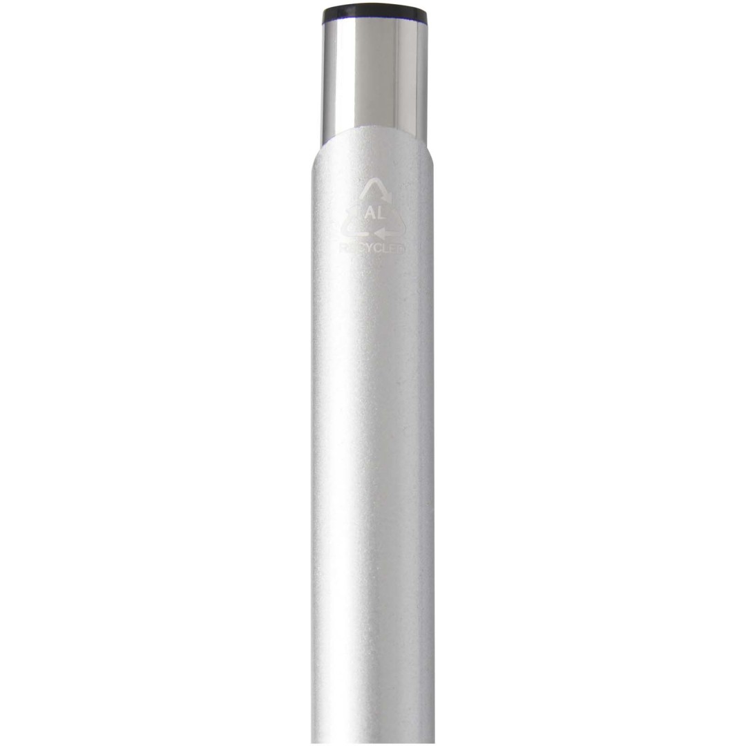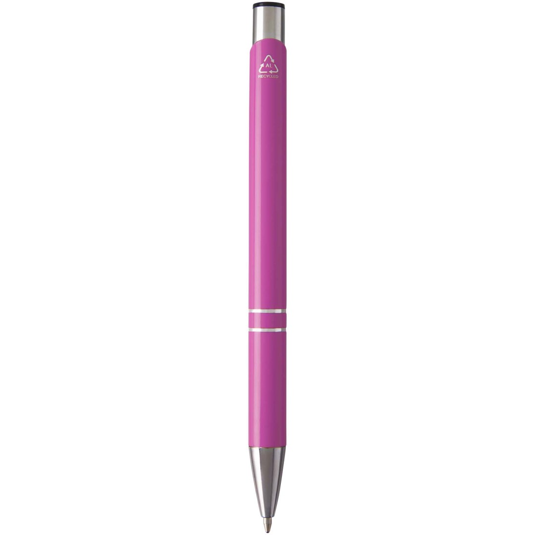 Kuličkové pero vyrobené z recyklovaného hliníku, s lakovanou a leštěnou povrchovou úpravou a nápadnými detaily z chromu. Snižuje také množství odpadu na skládkách a pomáhá šetřit přírodní zdroje s cílem snížit emise skleníkových plynů. Barva inkoustu: Modrá. Délka psaní: 1000 metrů. Rozměr hrotu: 1,00 mm.