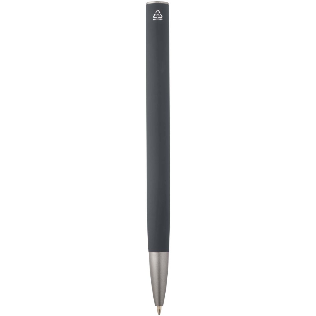 Kuličkové pero s tělem z recyklovaného hliníku a stříbrným klipem z ABS plastu. Snižuje také množství odpadu na skládkách a pomáhá šetřit přírodní zdroje s cílem snížit emise skleníkových plynů. Barva inkoustu: Černá. Délka psaní: 800 metrů. Rozměr hrotu: 1,0 mm.