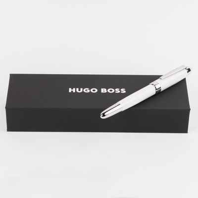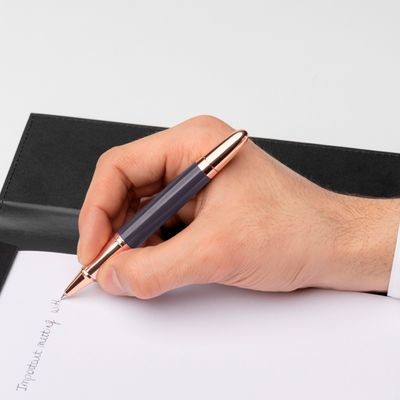 Linie Icon vyzařuje nadčasovou eleganci. Jeho klasický tvar a měkký rám jsou laděny do exkluzivních tmavě šedých odstínů. S rafinovanými detaily a nenápadným leskem je předmět vyroben téměř monochromaticky díky lištám, které dotváří sofistikovaný minimalistický vzhled. Položka je dostupná ve formě plnícího, rolleru a kuličkového pera.