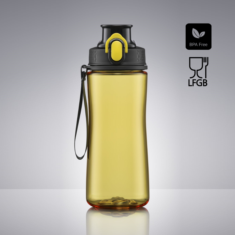 NEON láhev na vodu je stylové a funkční řešení pro ty, kteří jsou na cestách. Láhev je vyrobena z odolného materiálu Tritan, odolného vůči poškození a nepropustný uzávěr je vyroben z kombinace plastu a ABS, což zajišťuje dlouhou životnost. Inovativní design zahrnuje pohodlný otevírací mechanismus na jedno kliknutí pro rychlý a snadný přístup k vašemu nápoji. Když láhev nepoužíváte, můžete uzávěr uzamknout, abyste zabránili vylití obsahu. Široký otvor umožňuje vložit dovnitř kostky ledu. Láhev je také vybavena materiálovou rukojetí pro pohodlí. Výrobek je certifikován pro styk s potravinami a neobsahuje BPA. Vhodné do myčky nádobí. Kapacita: 580ml