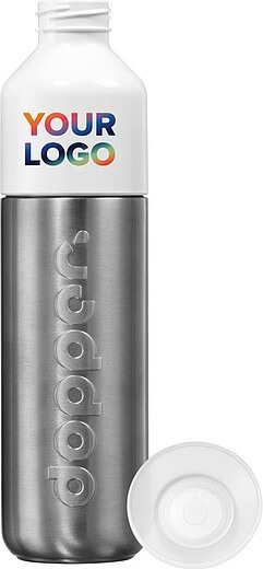 Nerezová láhev na pití DOPPER. Láhev DOPPER Steel 490ml má originální moderní design, který zaujme. Láhev je robustní a perfektně sedí do každé sportovní tašky. Láhev se skládá ze tří částí, které lze snadno oddělit a čistit. Jedna část lze použít jako hrnek na pití. Láhev je vhodná do myčky nádobí do 65°C. Všechny materiály jsou bez BPA a ftalátů. Nejedná se o termosku. Láhev je určena pouze na neperlivou vodu. Společnost Dopper má za cíl zvýšit povědomí o znečišťování oceánů jednorázově použitelnými plasty a zároveň snížit množství plastů, které v oceánech skončí. Rozměry: 6x23.5cm. Dodáváme pouze s potiskem. Termín dodání cca 14 dní. Cena nezahrnuje potisk. Minimální odběr 12 ks.