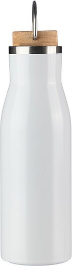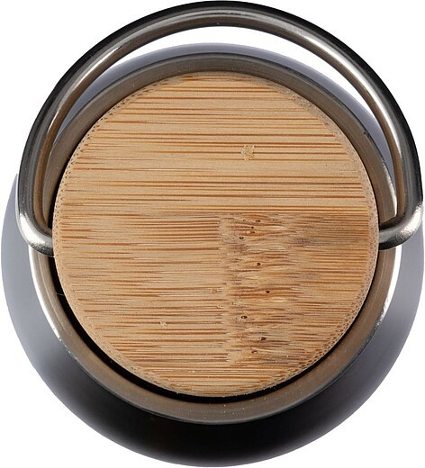 Láhev na pití z recyklované nerezové oceli s bambusovým víčkem a poutkem na přenášení. Nerezová ocel 304 uvnitř a nerezová ocel 201 venku. Na láhvi je logo recyklované nerezové oceli. Baleno po kusech v hnědé kartonové krabici. Materiál: nerezová ocel. Rozměry: 7,2 x 22,6 cm