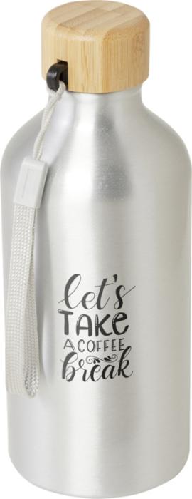 Láhev na vodu z recyklovaného hliníku s certifikací RCS se stylovým bambusovým víčkem. Tato lehká jednostěnná láhev je dodávána s popruhem pro snadné přenášení. Bambus pochází z udržitelných, ekologicky a sociálně odpovědných zdrojů. Objem je 500 ml. Nedoporučujeme mýt v myčce.