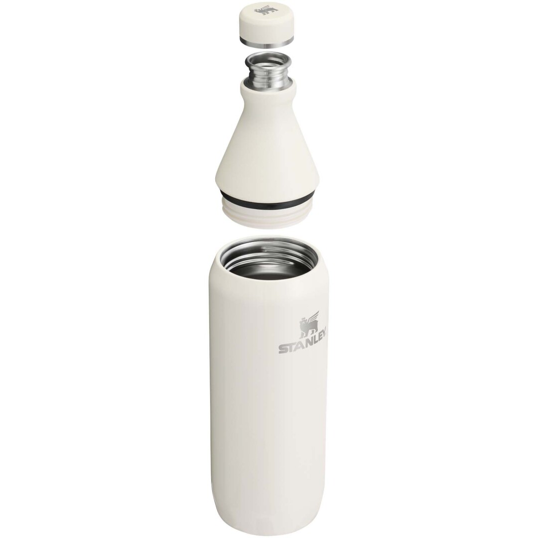 Láhev na vodu Stanley All Day Slim o objemu 600 ml je navržena pro celodenní hydrataci a kombinuje pohodlí a výkon. Vyrobena z 90 % z recyklované nerezové oceli. Má dvoudílné víčko – jedno pro snadné popíjení a druhé pro přidání ledu a bezproblémové čištění. Hrdlo je vyrobeno z jednostěnné nerezové oceli s plastovou přírubou se závitem a bezpečnostním tlakovým těsněním, aby se zabránilo úniku tekutin. Tělo má dvojitou vakuovou izolaci, která zajišťuje, že nápoje zůstanou v dokonalé teplotě po celé hodiny. Odolná a promyšleně navržená, tato láhev je ideální pro osvěžení, ať vás den zavede kamkoli.