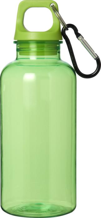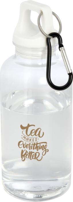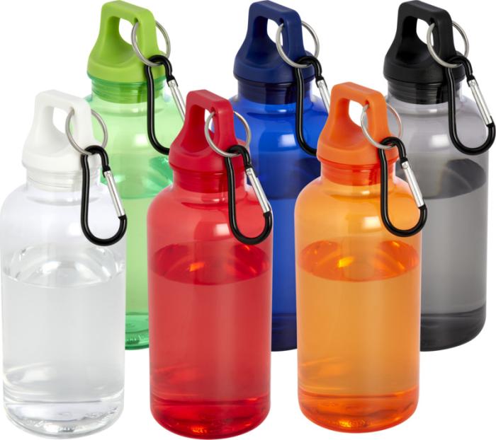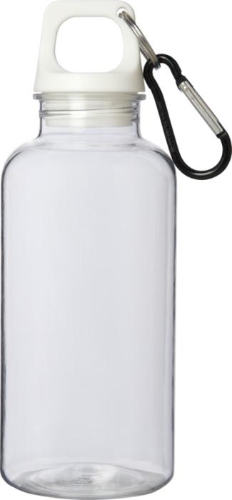 S touto odolnou a přitom lehkou 400ml lahví na vodu vyrobenou z recyklovaného plastu s certifikací RCS můžete zůstat neustále hydratovaní. Je dokonalou pomůckou při cvičení, na jednodenních výletech nebo v kanceláři. Jednostěnná láhev Oregon s otočným víčkem nabízí dostatek prostoru pro přidání jakéhokoli loga. Připevněte připojenou karabinu (není určená pro lezení) k tašce, abyste lahev neztratili. Bez BPA, testováno a schváleno podle německé legislativy pro bezpečnost potravin (LFGB) a na obsah ftalátů podle předpisů REACH. Víčko a tělo jsou vyrobeny ze 100% recyklovaného plastu.