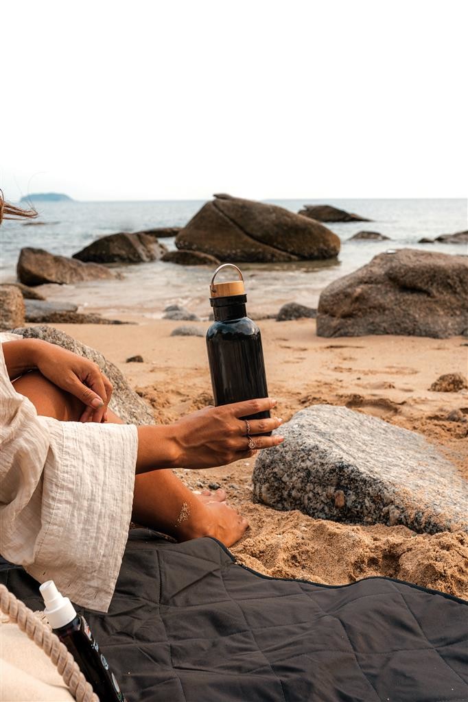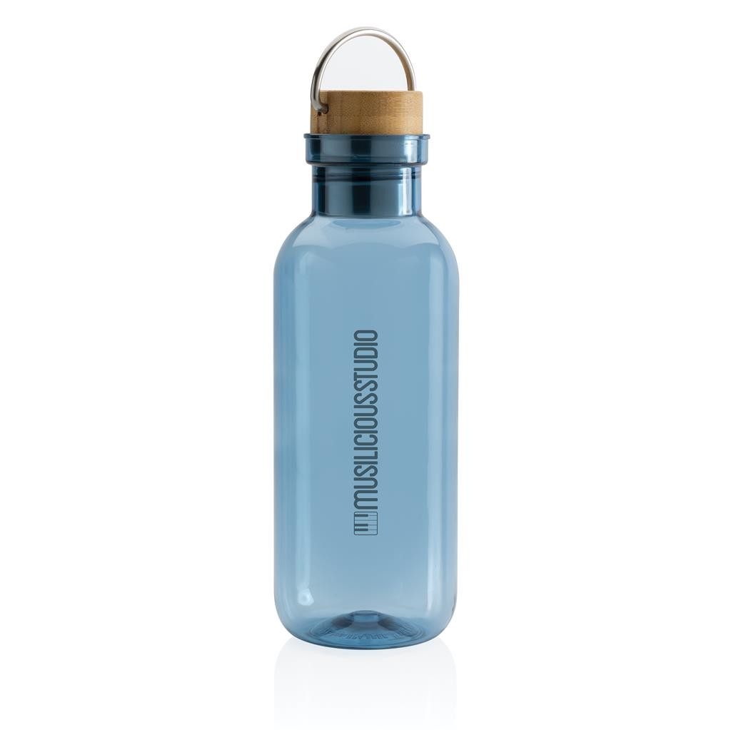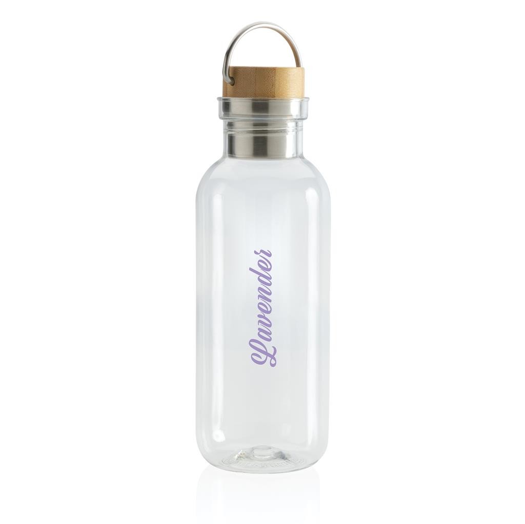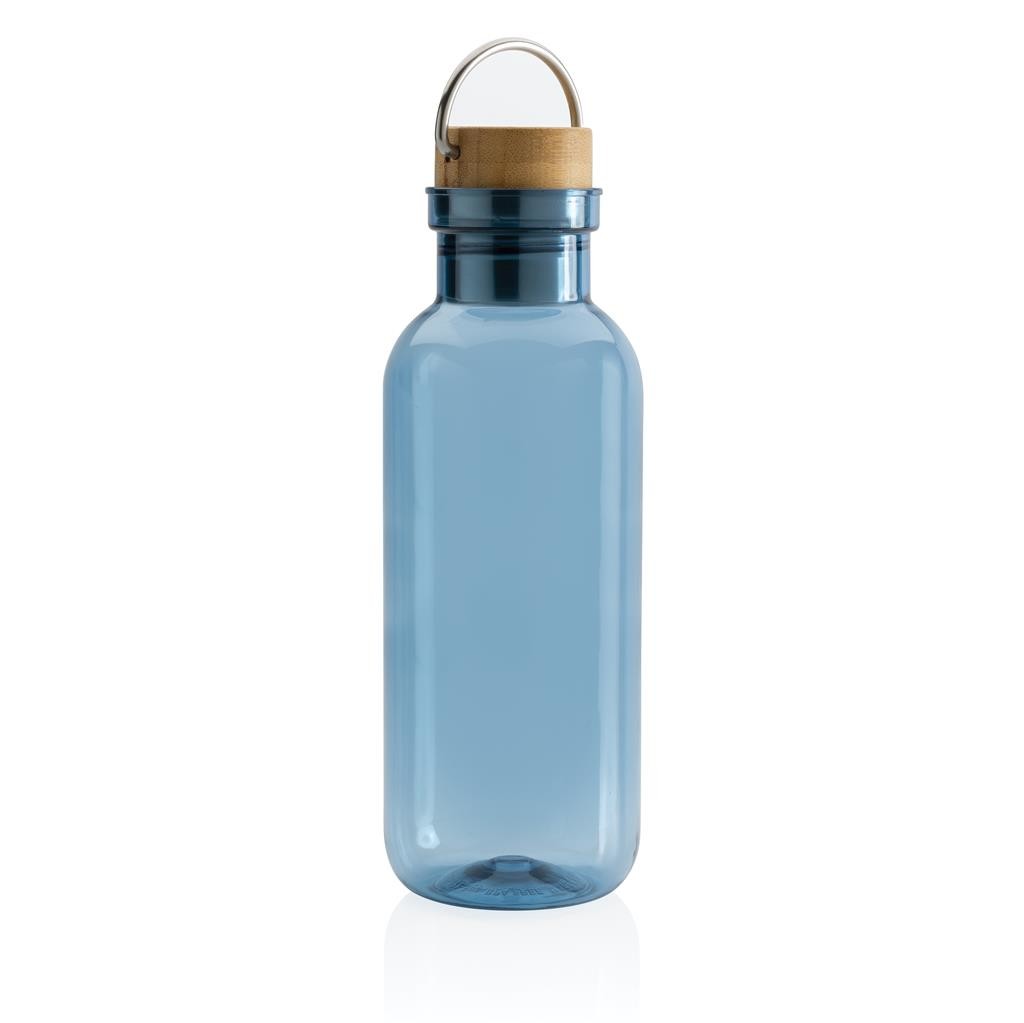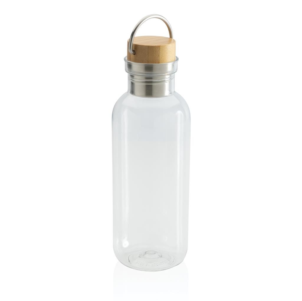Nepropustná lahev na vodu se stylovým bambusovým uzávěrem a praktickým madlem. Jednostěnné tělo lahve je vyrobené z GRS recyklovaného PET plastu. GRS (global recycled standard) zaručuje kompletně certifikovaný dodavatelský řetězec, čímž lze garantovat skutečné obsažení recyklátu. Podíl použitého recyklovaného materiálu vzhledem k celkové váze produktu: 56 %. Bambusový uzávěr s FSC certifikací. Pouze pro studené nápoje a pro ruční mytí. Bez BPA. Objem: 680 ml. Baleno v FSC kraftové krabičce.