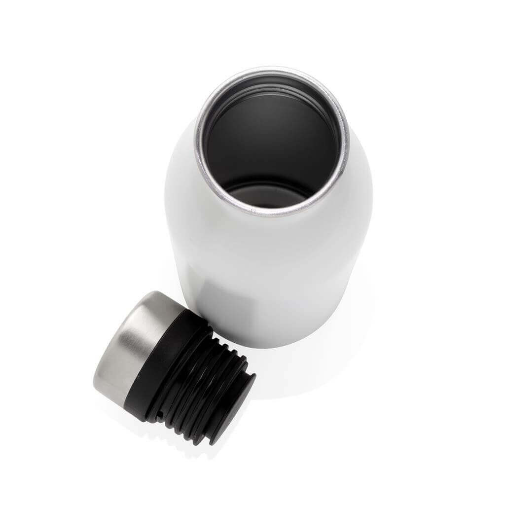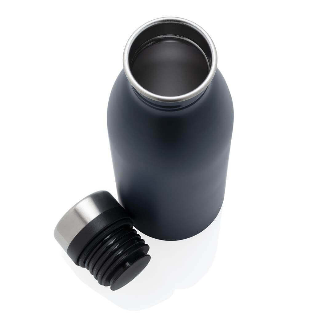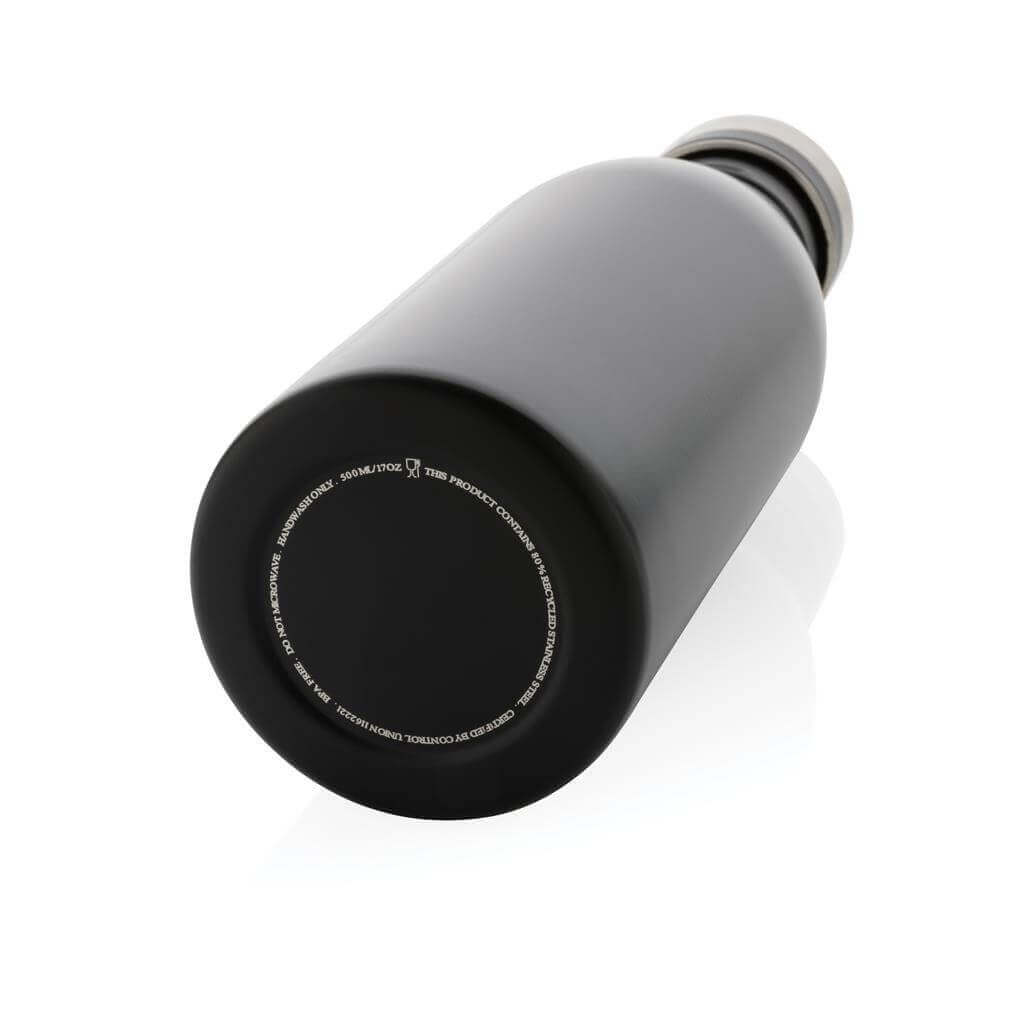 Lehká opakované použitelná lahev na vodu vyrobená z odolné recyklované nerezavějící oceli 18/8. Ideální velikost, nízká hmotnost a nepropustné víčko z ní dělají perfektní láhev pro každodenní použití a udržování pitného režimu. Doporučeno pouze pro studené nápoje. Vyrobená z RCS recyklované oceli. RCS (Recycled Claim Standard) je globální standard, který umožňuje ověřit použití recyklovaného materiálu v produktu napříč celým dodavatelským řetězcem. Celkový podíl recyklátu dle váhy produktu: 80 %. Objem: 500 ml. Bez BPA. Baleno v FSC® kraftové dárkové krabičce.