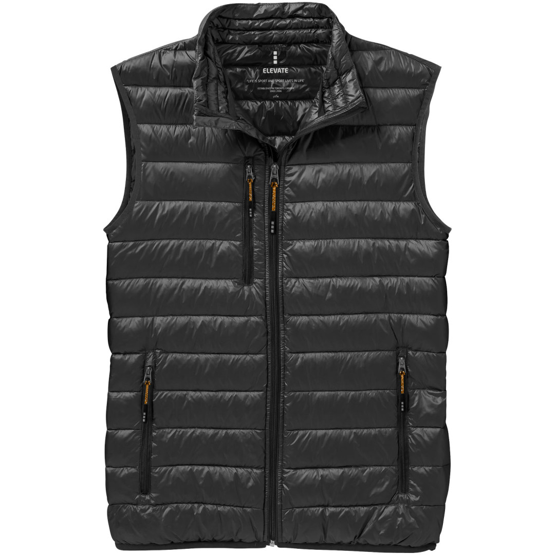 Pánská lehká péřová vesta Fairview - dokonalá funkčnost, která zvýší úroveň vašeho outdoorového oblečení. Tato bodywarmer má elastické vázání na spodní straně, které nabízí pohodlný a mírně přiléhavý střih, který zvyšuje ochranu před chladným větrem. Vnější plášťová tkanina je vyrobena z nylonu dull cire 20D tkaného s vodoodpudivou úpravou, což zajišťuje výjimečnou odolnost a dobrou ochranu před přírodními živly. Lehký materiál umožňuje snadný pohyb a bezproblémové nošení po celý den. Stlačená tkanina odolná proti prachovému peří zabraňuje úniku prachového peří a peří, čímž zajišťuje dlouhotrvající teplo a mimořádnou odolnost. Izolace z prachového peří je certifikovaná RDS (Responsible Down Standard), skládá se z prachového peří a peří a poskytuje lehké teplo, aniž by byly ohroženy etické standardy. Spolehlivý společník pro každé outdoorové dobrodružství. Nylonová tkanina T20D s vodou odpuzující úpravou Nylon, 37 g/m2, Padding/filling, Down insulation: Responsible Down Standard (RDS) Peří Peří.0