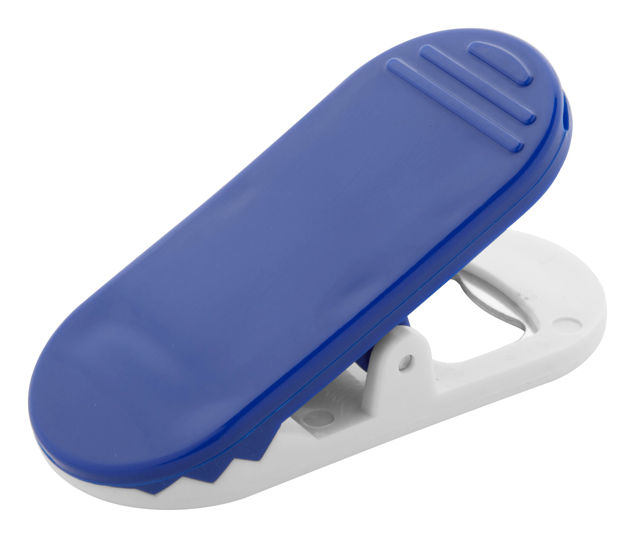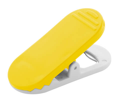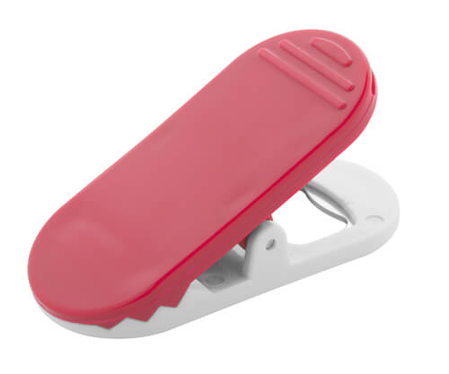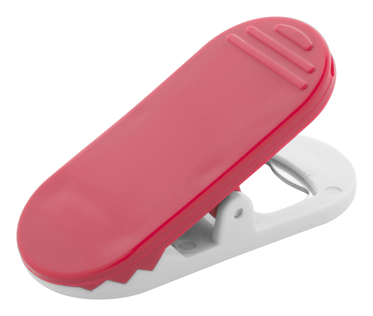 Plastový otvírák na láhve s klipem na poznámky a magnetem.