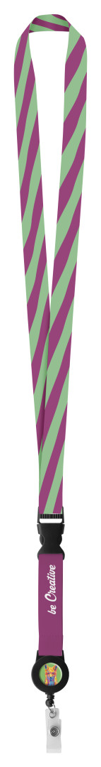 Polyesterový, široký lanyard na zakázku s oddělitelným teleskopickým připínákem. Cena zahrnuje sublimační potisk na obou stranách, nezahrnuje tiskovou přípravu. Min. mn.: 100 ks.