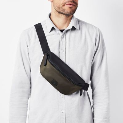 Nový typ tašky v našich řadách CERRUTI 1881: taška na opasek zdobí naše kolekce v této nové sezóně. Vyrobená z krásně strukturovaného nylonu sladěného s veganskou kůží a podepsaný embosovaným logem, je módním a praktickým doplňkem pro přenášení všech vašich nezbytných věcí. Dostupné v černé, námořnické, khaki nebo béžové barvě.