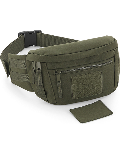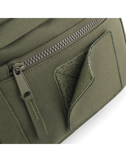 Polyester 600D | Odtrhávací štítek pro snadnou změnu designu | Vyměnitelná vsadka Rip-Strip™ určená k dekoraci | Hlavní kapsa na zip | Přední kapsa na zip | Ozdobné poutko popruhu MOLLE | Nastavitelný pásek z popruhoviny s bezpečnou sponou | Dodávka bez obsahu/dekorace | Kapacita: 3 l.