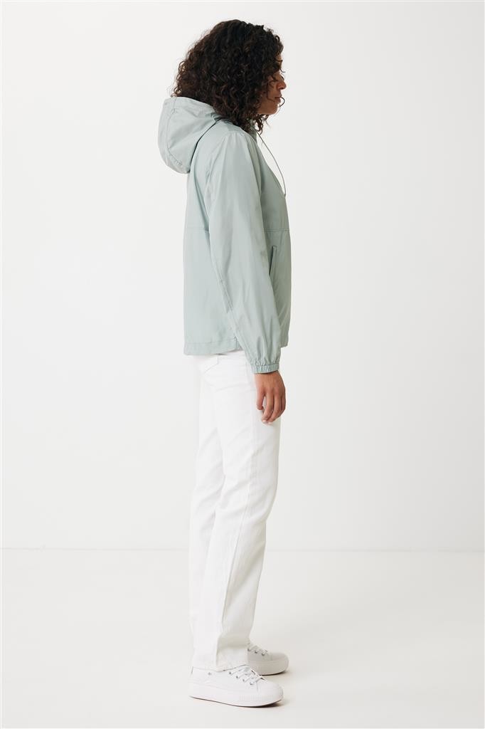 Unisexová lehká bunda vyrobená ze 100 % post-consumer recyklovaného polyesteru s gramáží 70g/m². Stahovací kapuce, oboustranný zip na přední části, švy prošité kapsy. Tahače zipů v ladících odstínech. Plně elastické manžety. Prodloužená, do oblouku zakřivená zadní spodní část, spodní lem s elastickou stahovací gumičkou pro vyšší ochranu. Vodě repelentní impregnace bez obsahu fluorinu/PFAS. Obsah recyklovaných materiálů je garantován díky využití technologie AWARE™, která kombinuje možnost skenování materiálu a technologii blockchain. Každý produkt Iqoniq vlastní unikátní štítek s QR kódem, který odkazuje na příslušný digitální pas produktu. 2 % z výtěžku každého prodaného kusu je darováno na Water.org. Certifikováno OEKO-TEX® STANDARD 100.