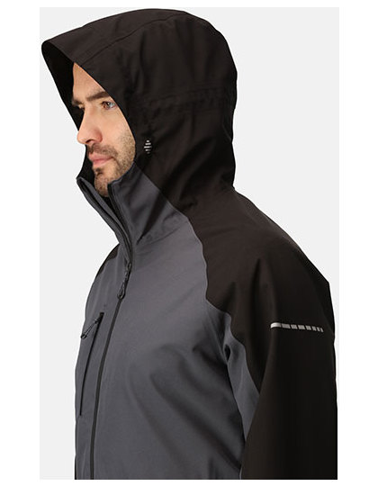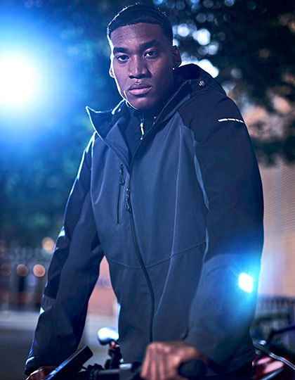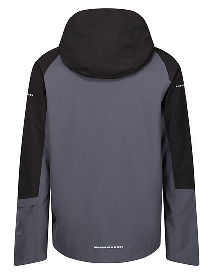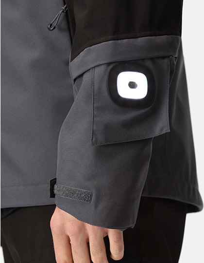 Čtyřcestný strečový vodotěsný a prodyšný materiál Isotex 10000 ze 100% recyklovaného polyesteru | Podlepené švy a neodnímatelná nastavitelná kapuce, vnitřní strana plně podšitá síťovinou a reflexní potisky na horní části paží | Technologie svítilny Brite Light v rukávu – skrytá v kapse, s dobíjecí baterií | Nastavitelné manžety a lem, několik kapes včetně vnitřní bezpečnostní kapsy, zip pro přístup k výšivce a větrací zipy v podpaží.