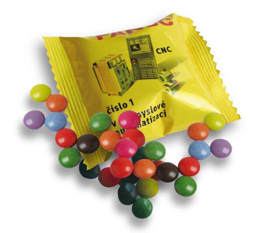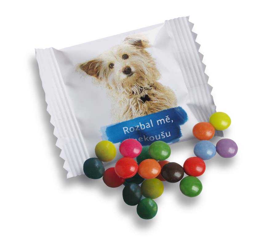 Lentilky v sáčku jsou ve čtyřech objemových baleních s celopotisknutelným obalem.