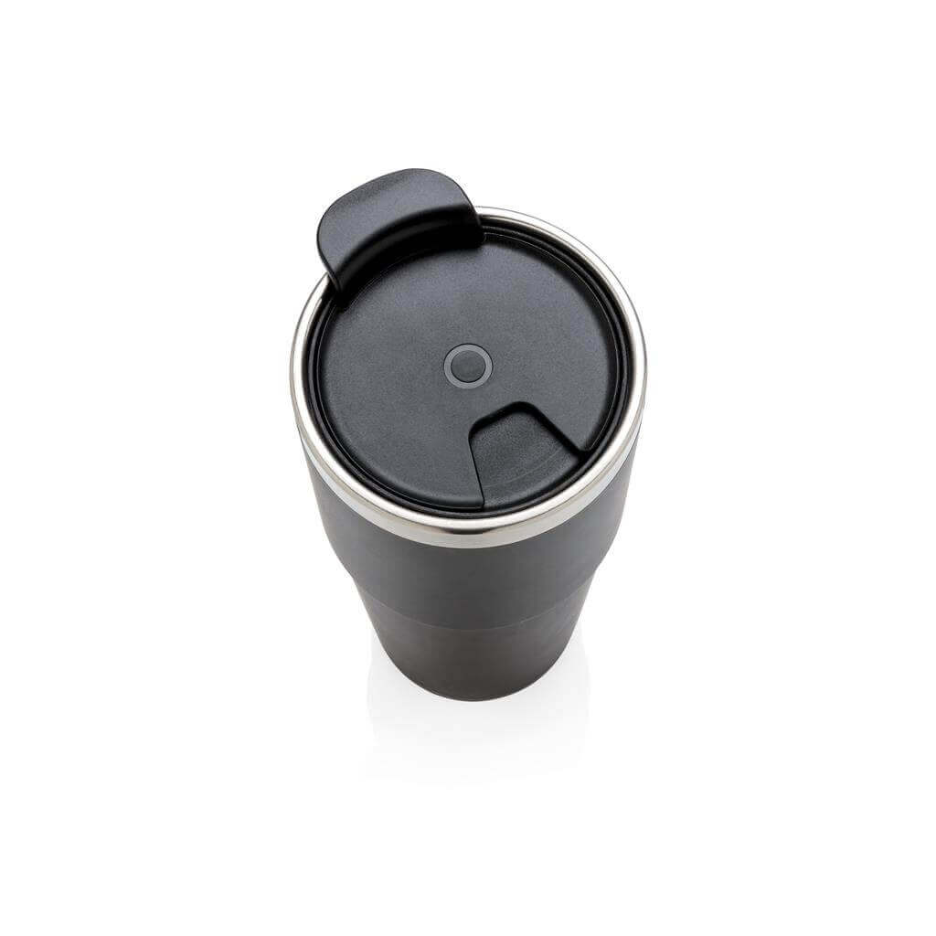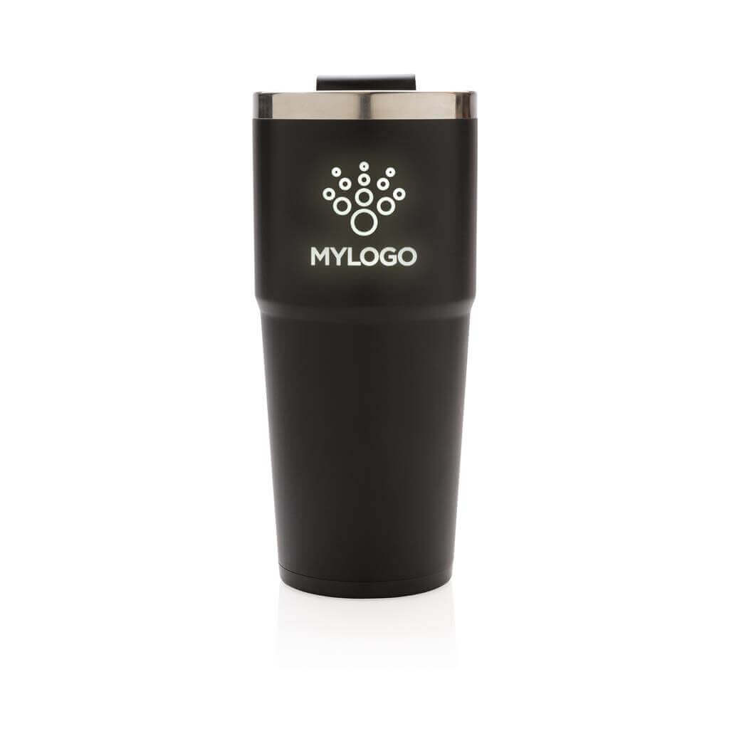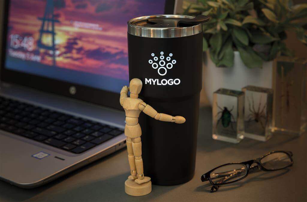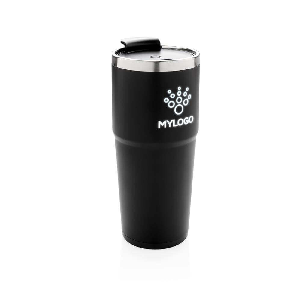 Termohrnek s dvojitou stěnou, vyroben z nerezavějící oceli (uvnitř 304 SS, vně ABS plast). Na vyhrazeném místě lze brandovat originálním gravírem, jehož vzor se po uchopení hrnku rozsvítí a vaše logo tak stylově zvýrazní. Rozsvěcování lze vypnout tlačítkem. Obsahuje 2 CR2032 baterie. Objem 480 ml. 2 baterií typu Li-ion súčasťou balenia. PMS color 1: Black