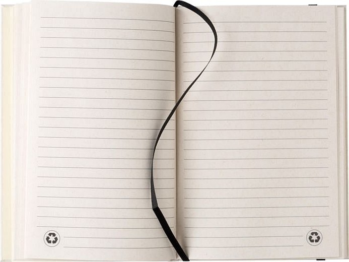 Linkovaný poznámkový blok A5, vyrobený ze 70% z recyklovaného mléčného kartonu a z 30% z recyklovaného papíru s 80 listy, gumičkou a záložkou. Na spodní straně obalu je vyražený znak krabice od mléka. Rozměry: 21 x 14 x 1.3 cm