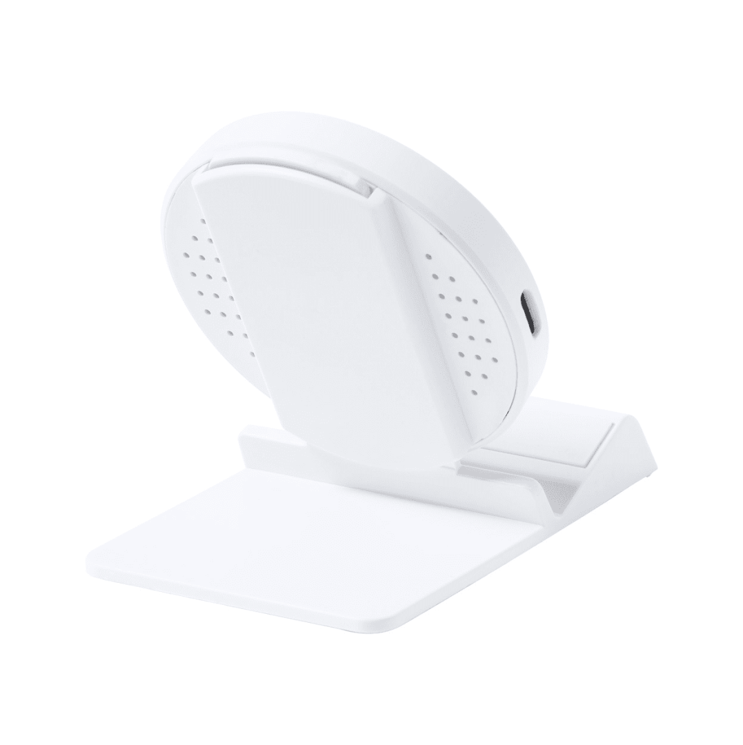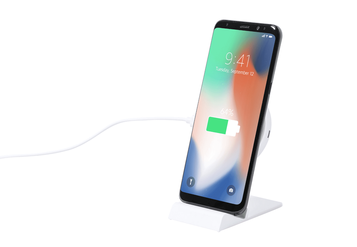 Stojánek na mobil z ABS plastu se zabudovanou výškově nastavitelnou bezdrátovou rychlonabíječkou (15W). Včetně USB nabíjecího kabelu.