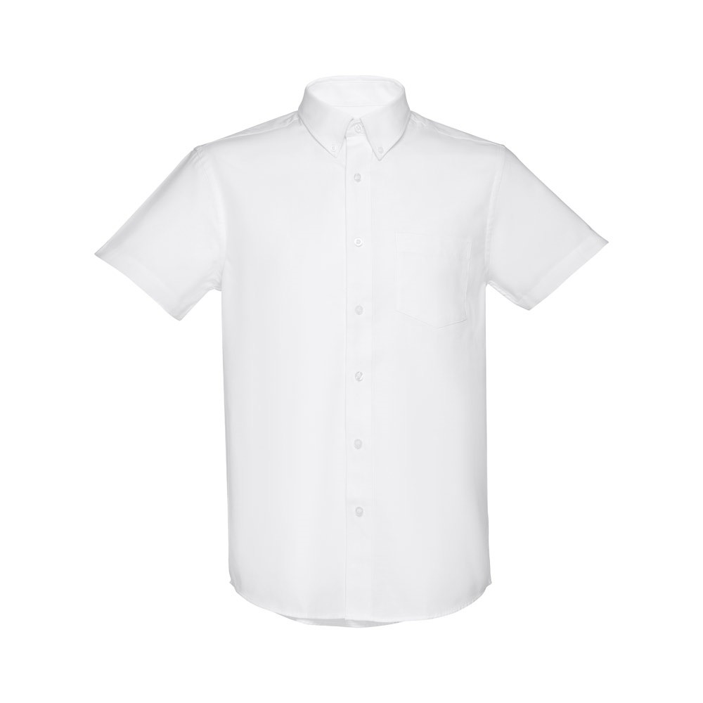 Oxfordská pánská košile, 70% bavlna a 30% polyester (130 g/m²). Krátký rukáv. Kapsa na levé straně. Límec s 2 knoflíky. Léga se 7 perlovými knoflíky.