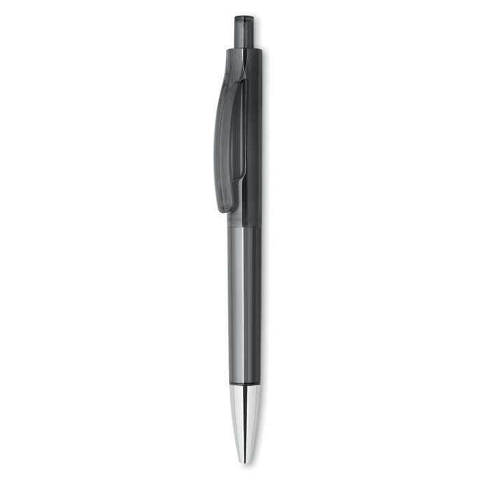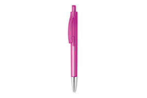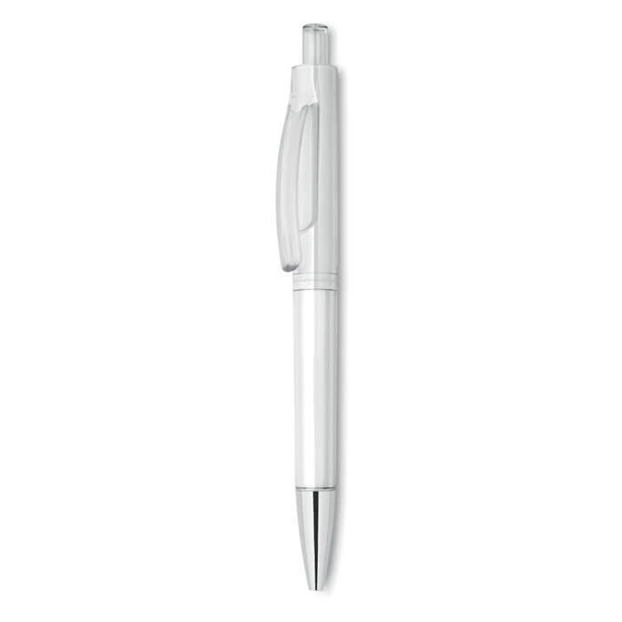 Kuličkové pero s transparentním tělem a lesklým hrotem. Modrý inkoust.