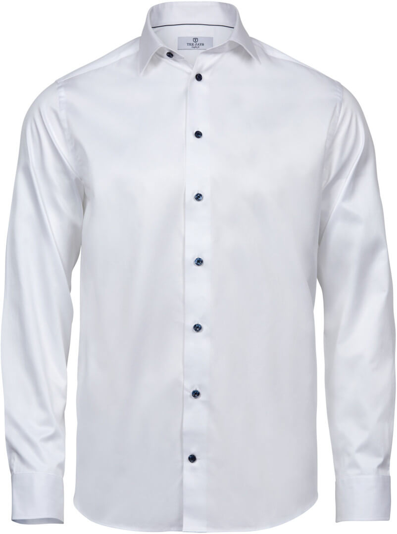 133g/m², 100% bavlna Twill, barvená v přízi Klasický střih, mírný Cutaway límec, zaoblený límec a manžety, zakulacený lem, zadní sedlo, záševky na zádech, Easy Iron Finish