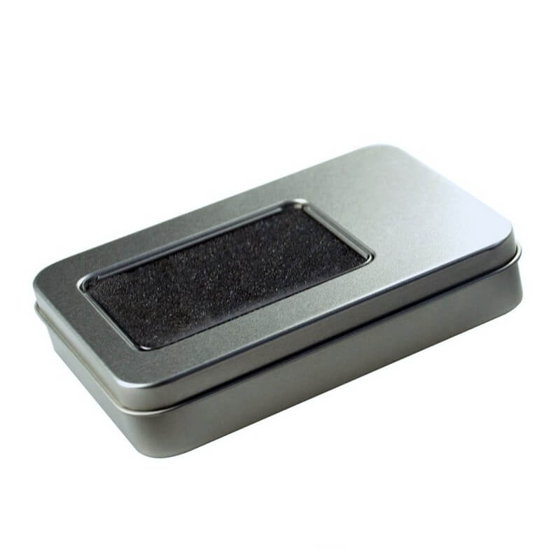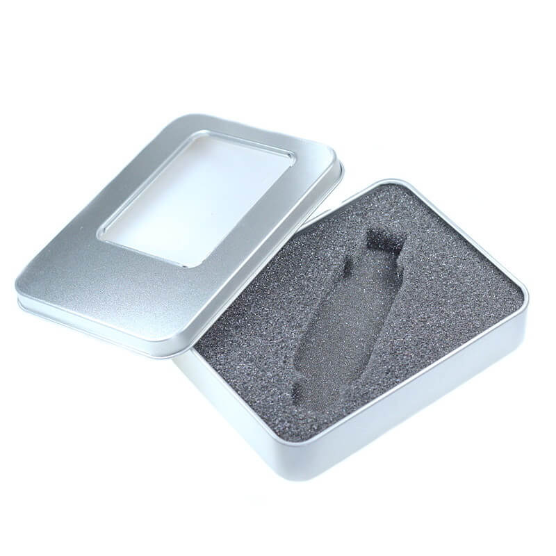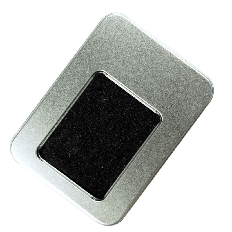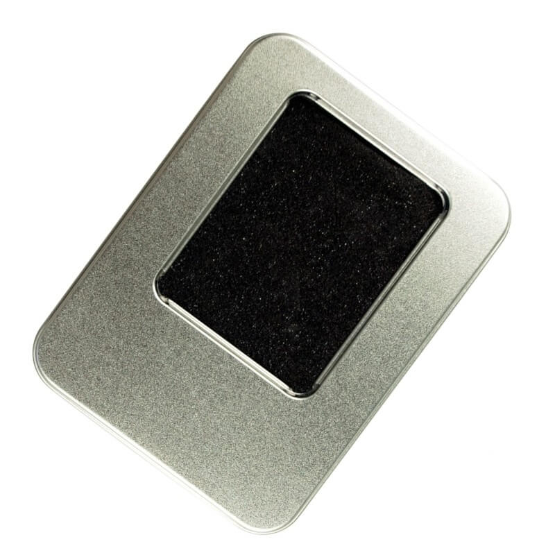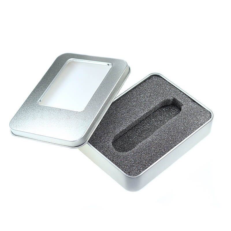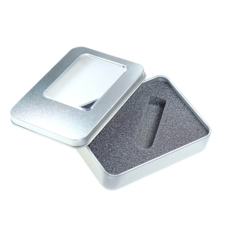 Luxusní kovová krabička s okénkem. Díky větším rozměrům je vhodná pro většinu modelů USB.