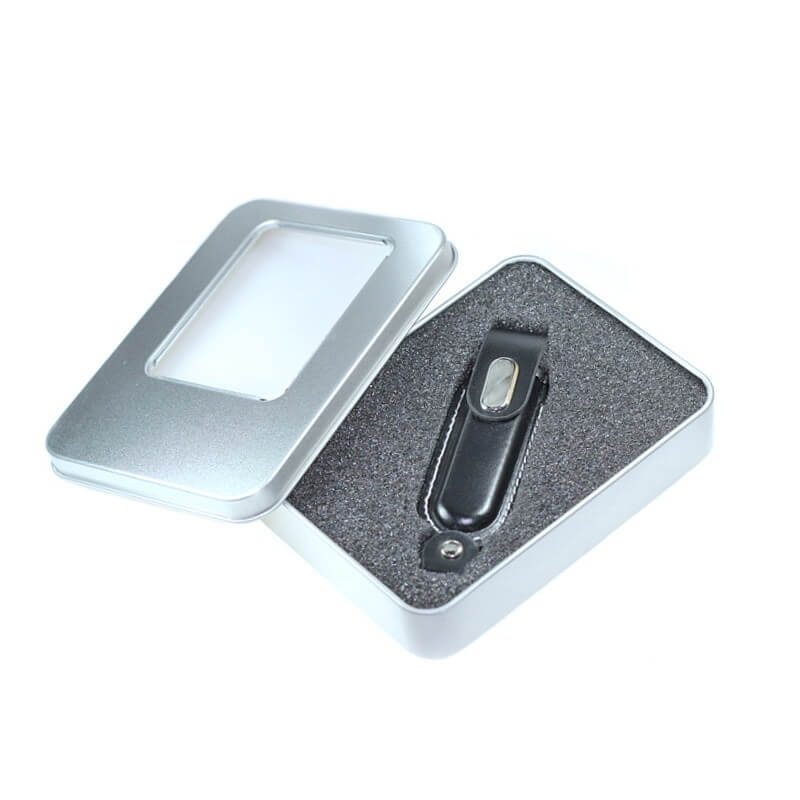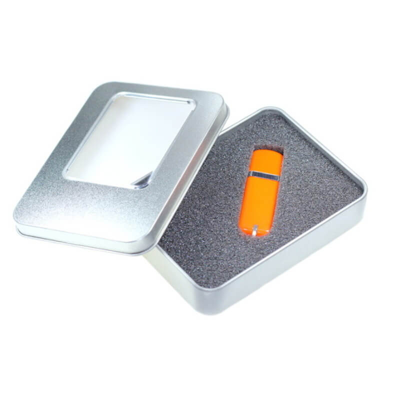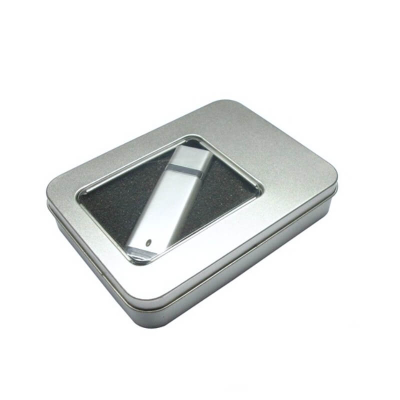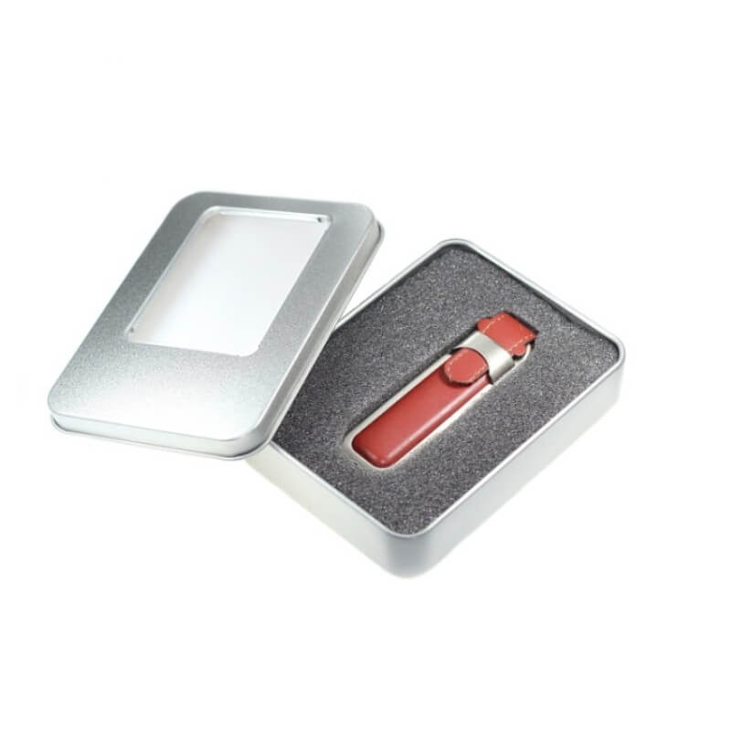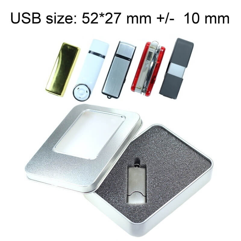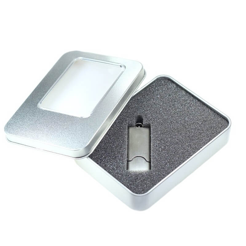 Luxusní kovová krabička s okénkem. Díky větším rozměrům je vhodná pro většinu modelů USB.
