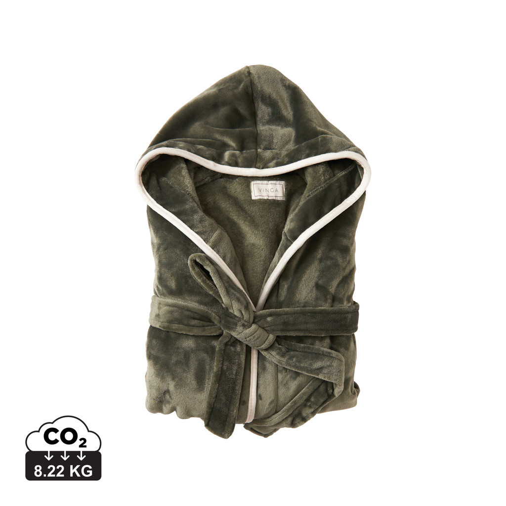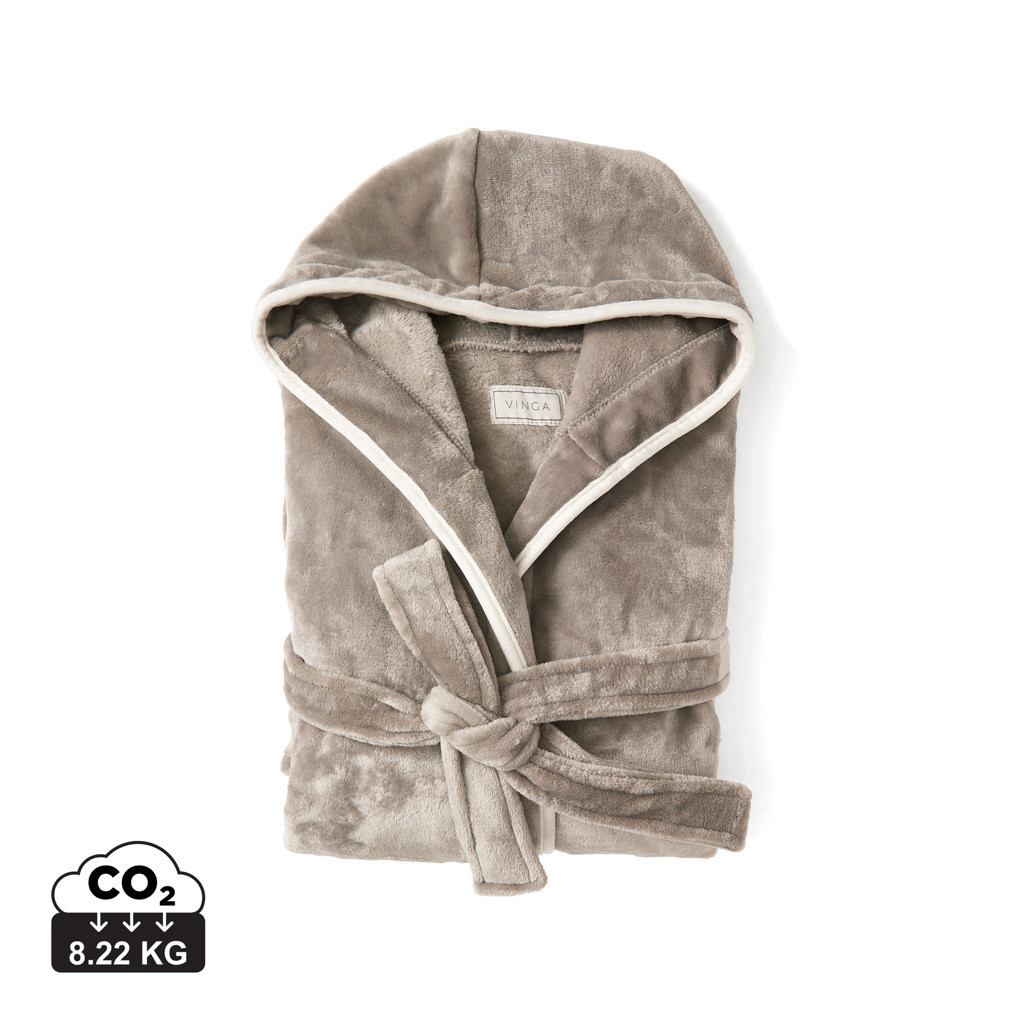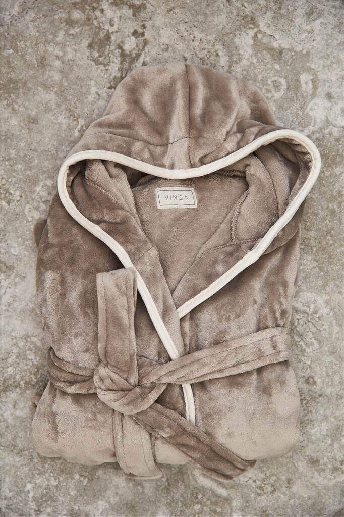 Měkký a příjemný župan z luxusního plyše s velkou kapucí a ozdobným lemováním. Dvě přední kapsy a pásek v pase. Župan je ze 70 % vyroben z recyklovaného materiálu z PET lahví. Neradi přepravujeme vzduch, a proto jsme se rozhodli tento župan vakuově zabalit a snížit naši uhlíkovou stopu. OEKO-TEX Standard 100 znamená, že materiál županu splňuje několik kritérií bezpečnosti výrobku.