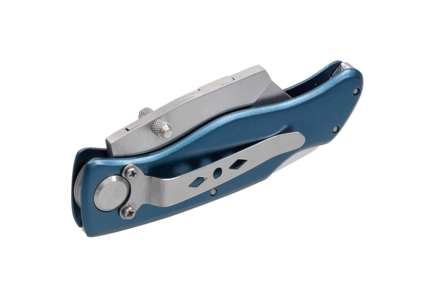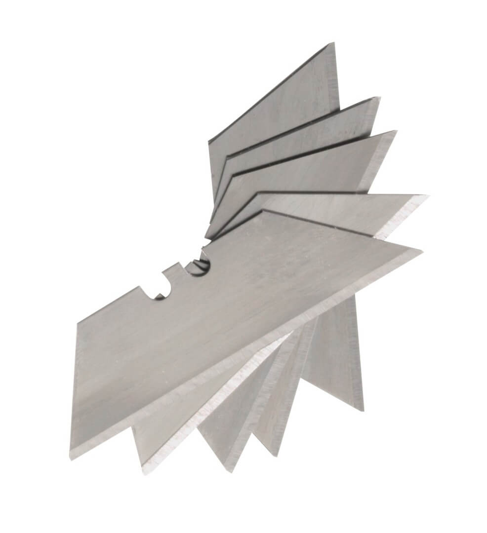 Skládací ořezávací nůž MA-BU, skládací: snadno měnitelná manganová čepel, vč. 5 náhradní čepelí v průhledném boxu, ergonomická rukojeť, spona na opasek celková hmotnost: cca. 86 g