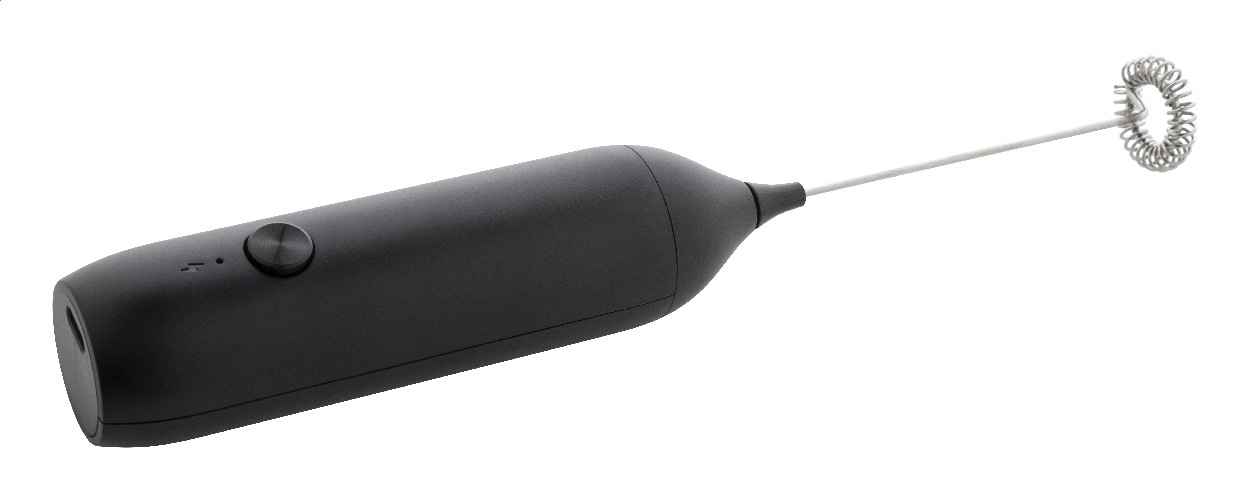 Elektrický ruční napěňovač mléka v pouzdře z recyklovaného ABS s matným povrchem. S vestavěnou dobíjecí baterií přes USB (500 mAh). Včetně nabíjecího kabelu USB-C. New. Go Green. Vestavěná nabíjecí baterie: Ano. Kapacita baterie: 500 mAh. USB kabel je součástí balení: Ano