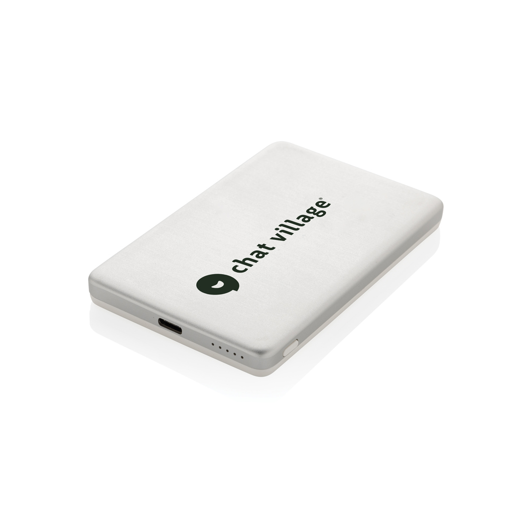 Ultralehká powerbanka s kapacitou 5 000 mAh a 5W magnetickou bezdrátovou nabíječkou, jejíž kryt je vyroben z recyklovaného hliníku s certifikací RCS a recyklovaného plastu ABS. RCS je standard pro ověřování recyklovaného obsahu výrobku v celém dodavatelském řetězci. Celkový recyklovaný obsah: 23 % na základě celkové hmotnosti výrobku. Powerbanka obsahuje lithium-polymerovou baterii třídy A s dlouhou životností 5 000 mAh. Vstup Type-C 5V/2,4A; výstup USB-C: 5V/2A,4A. Položka a příslušenství neobsahují PVC. Součástí je nabíjecí kabel TPE s certifikací RCS pro recyklované materiály. Baleno ve smíšeném obalu FSC®.
