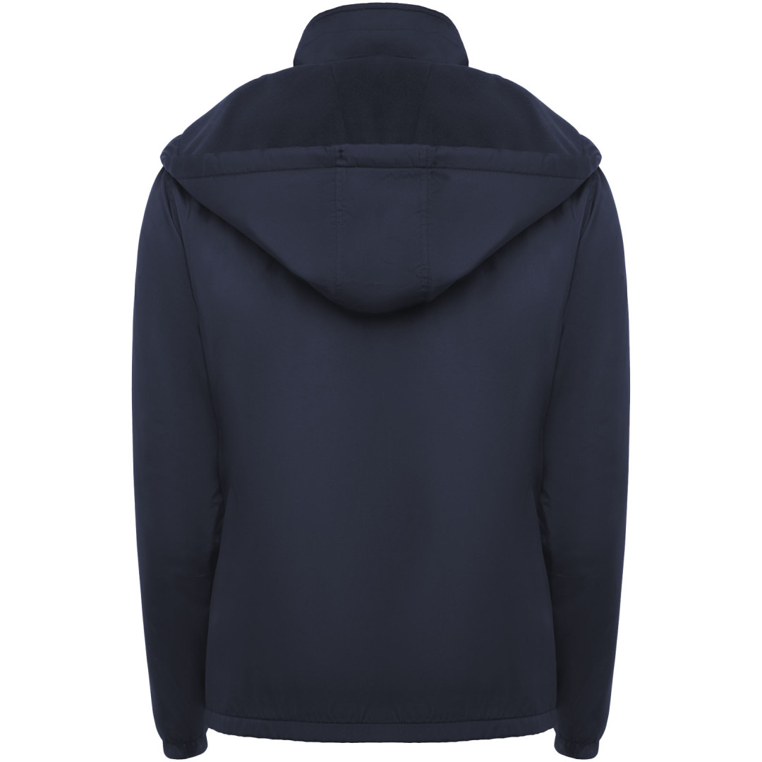 Lehká nepromokavá bunda. Vysoký límec a skládací kapuce s regulací. Podšívka z mikrofleecu. Přední zip a chránič brady. Elastické manžety. Dvě boční kapsy na zip. Vnitřní levá náprsní kapsa. Odnímatelný štítek. Nepromokavá. Odolná proti větru. Model měří 184 cm a má na sobě velikost L, modelka měří 174 cm a má na sobě velikost S.