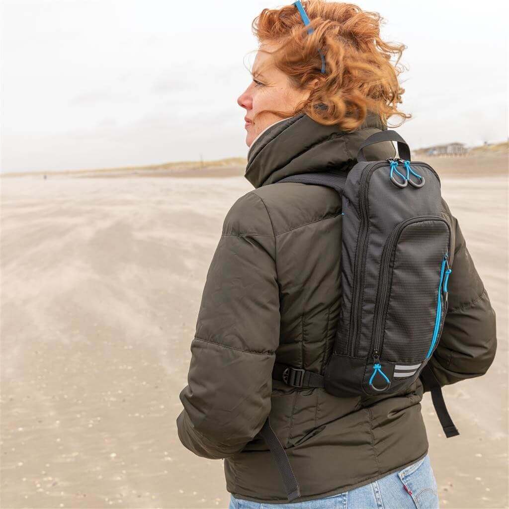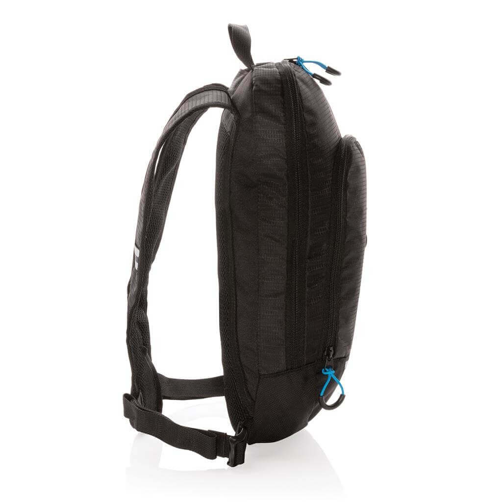 Malý turistický batoh v minimalistickém stylu vyrobený z odolného materiálu ripstop. Ideální na různé druhy outdoorových aktivit. Hlavní oddíl na zip, přední kapsa na zip s vývodem vhodná pro vložení hydratačního vaku. Polstrovaná síťová zadní část a popruhy pro pohodlné nošení. Bez PVC.