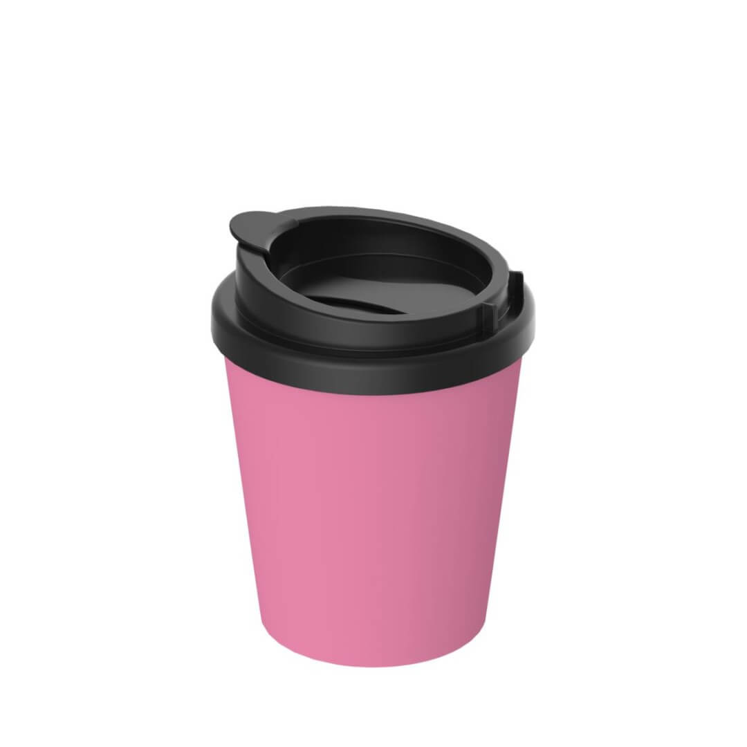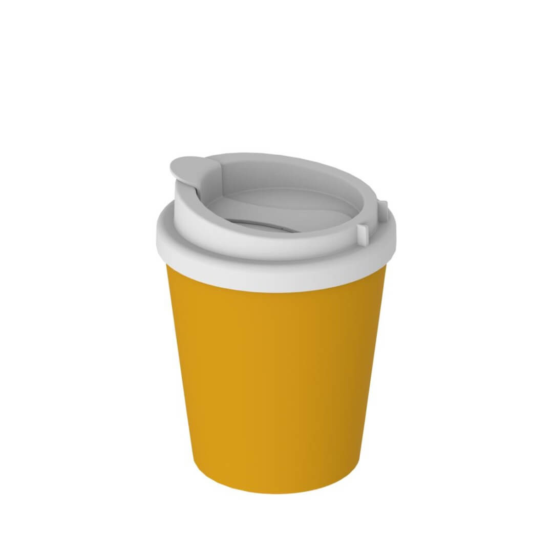 Kompaktní dvoustěnný plastový To-Go kelímek s odnímatelným víkem a flexibilní krytkou otvoru pro pití, která se dá po odklopení pohodlně uchytit k okraji, aby nepřekážela. Vhodný do všech běžných automobilových držáků nápojů. Objem 0,25 l.
