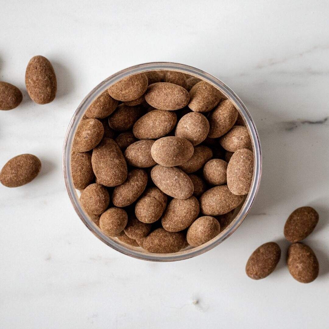 Mandle v mléčné čokoládě se skořicí patří mezi nejlahodnější čokoládové oříšky, a proto jsou nejoblíbenější a nejprodávanější čokoládovou variantou. Jádra mandlí jsou mírně opražená na sucho pro zvýraznění přirozené chuti, poté jsou obalena do lahodné mléčné čokolády a nakonec jsou lehce posypaná skořicí.