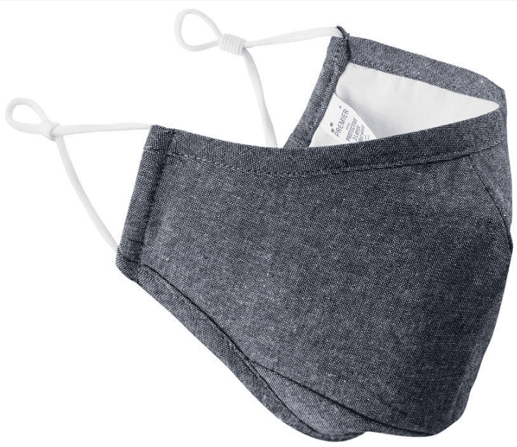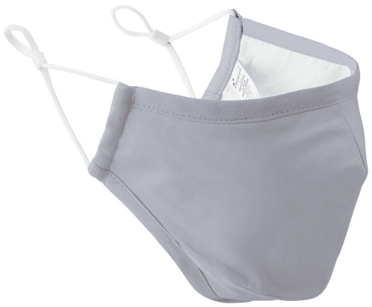 3-vrstvá opakovaně použitelná maska na ústa a nos, přihrádka na volitelný filtr s aktivním uhlím, nastavitelná elastická poutka na uši, nosní můstek, nejedná se o zdravotnícký prostředek ani osobní ochranný prostředek (OOP), pouze pro soukromé použití, AFNOR SPEC S76-001 – Eurofins Test CH_PCL_1 třída 2,