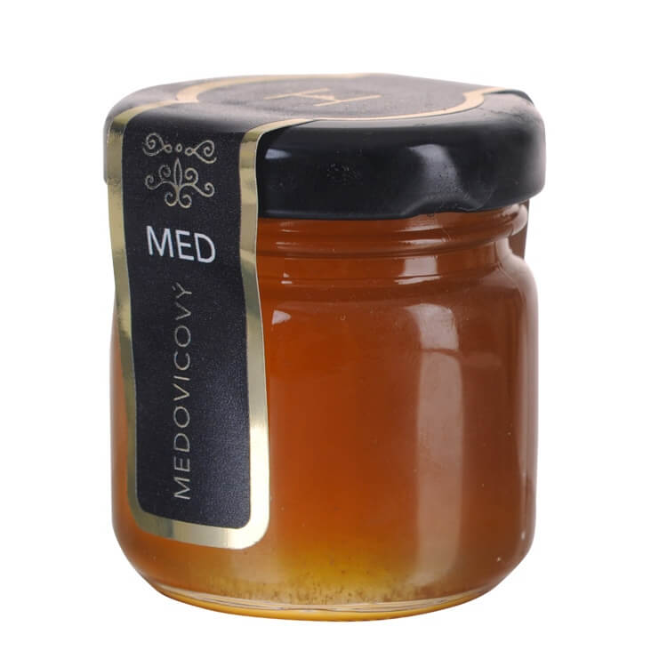 Med v dárkových lahvích o hmotnosti 65g. Na výběr je několik druhů medů. Můžete využít jejich plochu pro branding etiketou nebo využít pěknou krabičku či rukáv.