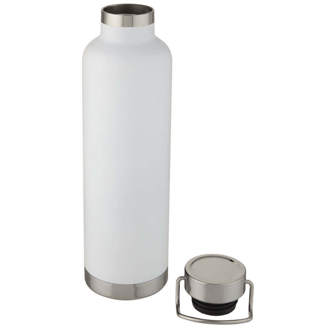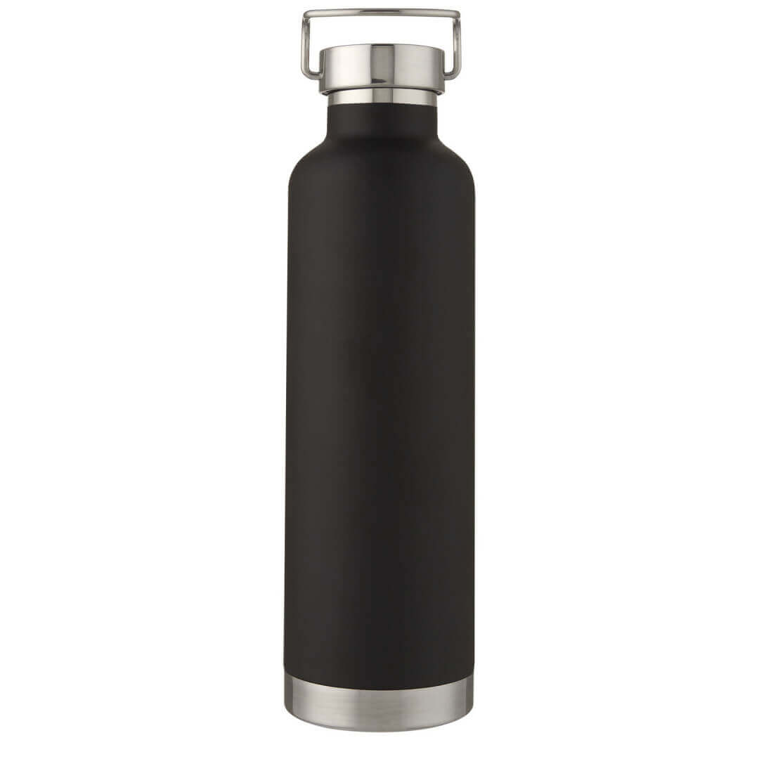 Velká dvoustěnná sportovní láhev s vakuovou konstrukcí z nerezové oceli 18/8 a měděnou izolací, která udrží nápoje horké nebo studené po několik hodin. Konstrukce také zabraňuje kondenzaci na vnější straně láhve a díky trendy práškovému lakování je mimořádně odolná. Nerezové šroubovací nepropustné víko s odolným nerezovým poutkem na ruku. Široký otvor pro snadné plnění, nalévání a čištění. Bez BPA, testováno a schváleno podle německé legislativy o bezpečnosti potravin (LFGB). Testováno a schváleno na obsah ftalátů podle předpisů REACH. Perfektní na kostky ledu. Objem je 1 l. Nedoporučuje se mýt v myčce. Dodává se v dárkové krabičce z recyklované lepenky.