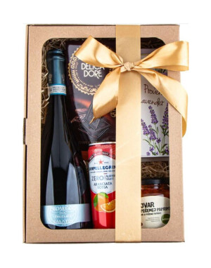 Set obsahuje: med od včelaře ve sklenici ve tvaru amfory 130g s textilní dekorací, čajová směs sušených bylin 20g, sáček sušené levandule, svíčka ze včelího vosku, dřevěná naběračka na med, dřevěná vlna, barevná papírová krabička. Rozměr: 160x160x105mm. Váha: 560g