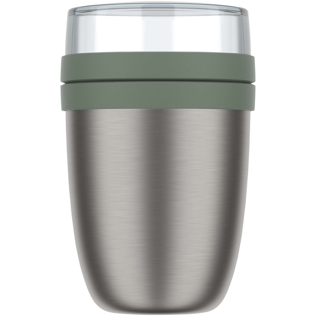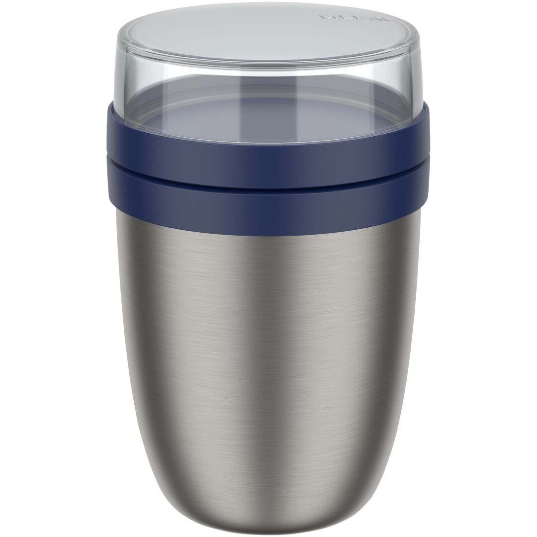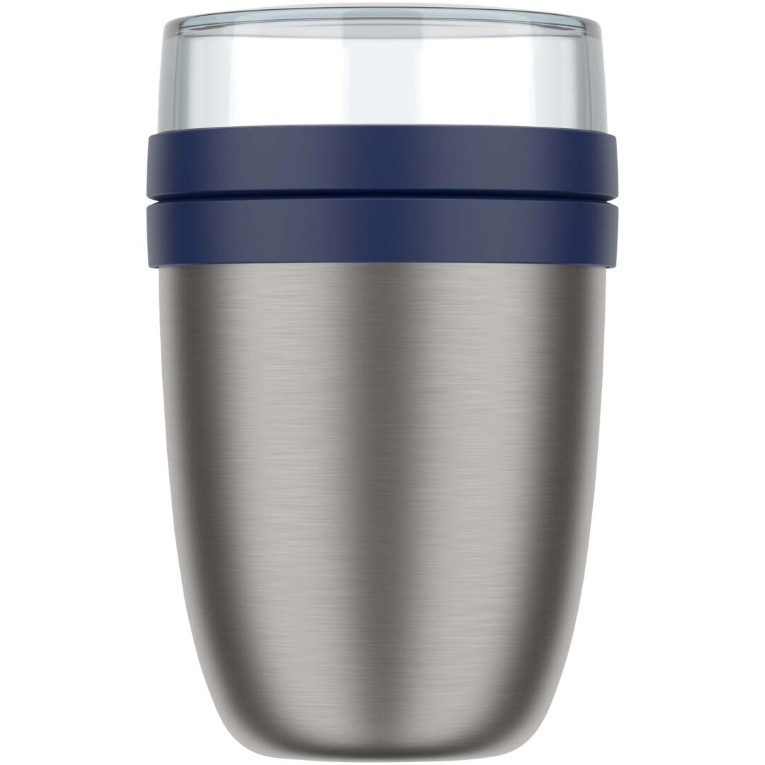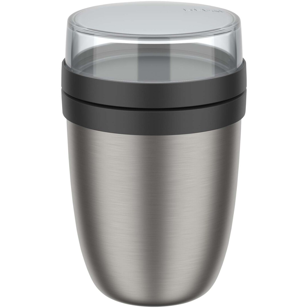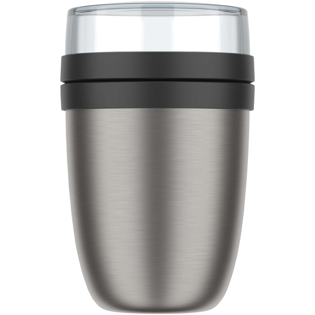 Tepelně izolovaný box na jídlo obsahující dvě různé přihrádky, díky kterým můžete uložit různé ingredience odděleně. Obě nádoby mají samostatné víko, aby se ingredience nesmíchaly. Udrží jídlo teplé 6–8 hodin a studené 12 hodin. Objem horní průhledné nádoby je 200 ml. Objem spodní nádoby je 500 ml. Vyrobeno z odolného materiálu. Vnější strana boxu zůstává chladná a suchá. Doporučujeme mýt ručně. Plastové části víka lze mýt v myčce na nádobí.