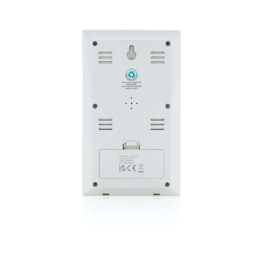 Meteostanice s LCD displejem a funkcemi, které zahrnují: teplota, vlhkost, čas, den, datum. Vyrobeno z RCS recyklovaného ABS plastu a FSC® bambusu. RCS (Recycled Claim Standard) je globální standard, který umožňuje ověřit použití recyklovaného materiálu v produktu napříč celým dodavatelským řetězcem. Celkový podíl recyklátu dle váhy produktu: 42 %. Včetně AAA baterií pro okamžité použití. Baleno v FSC® dárkové krabičce. 2 baterií typu AAA súčasťou balenia.