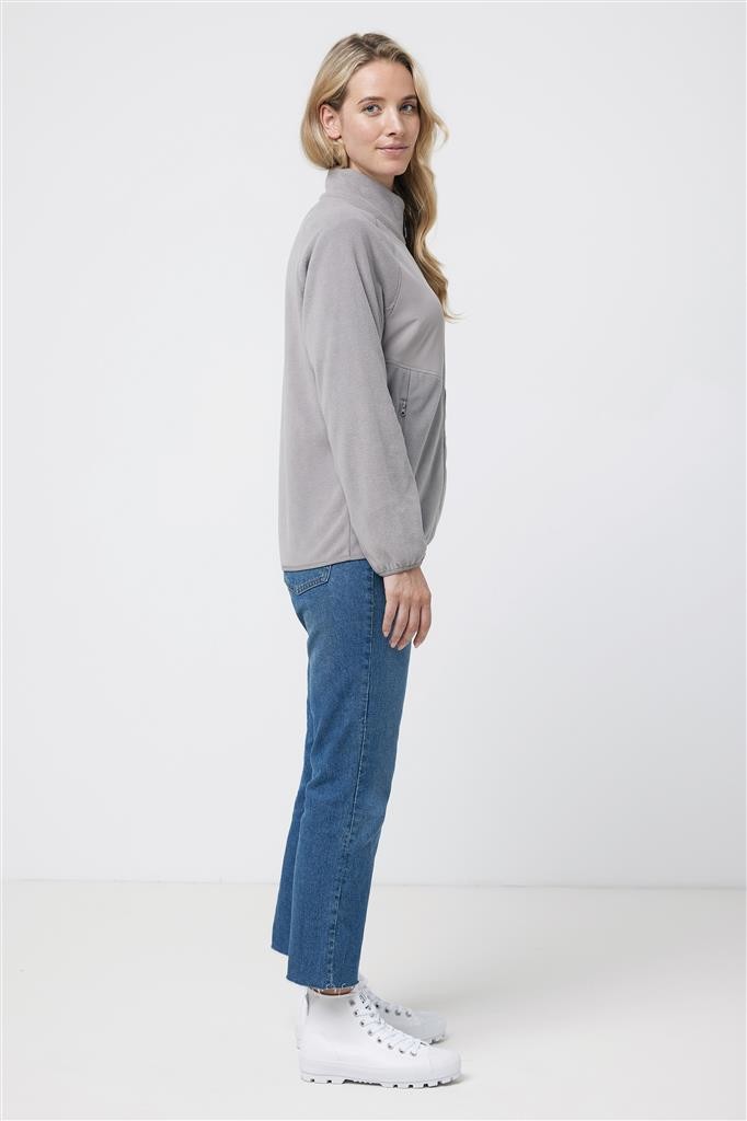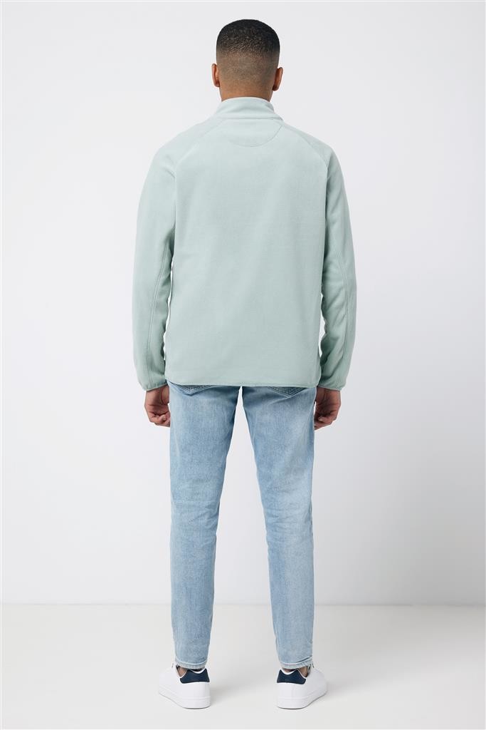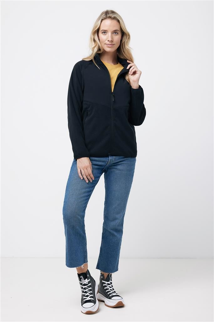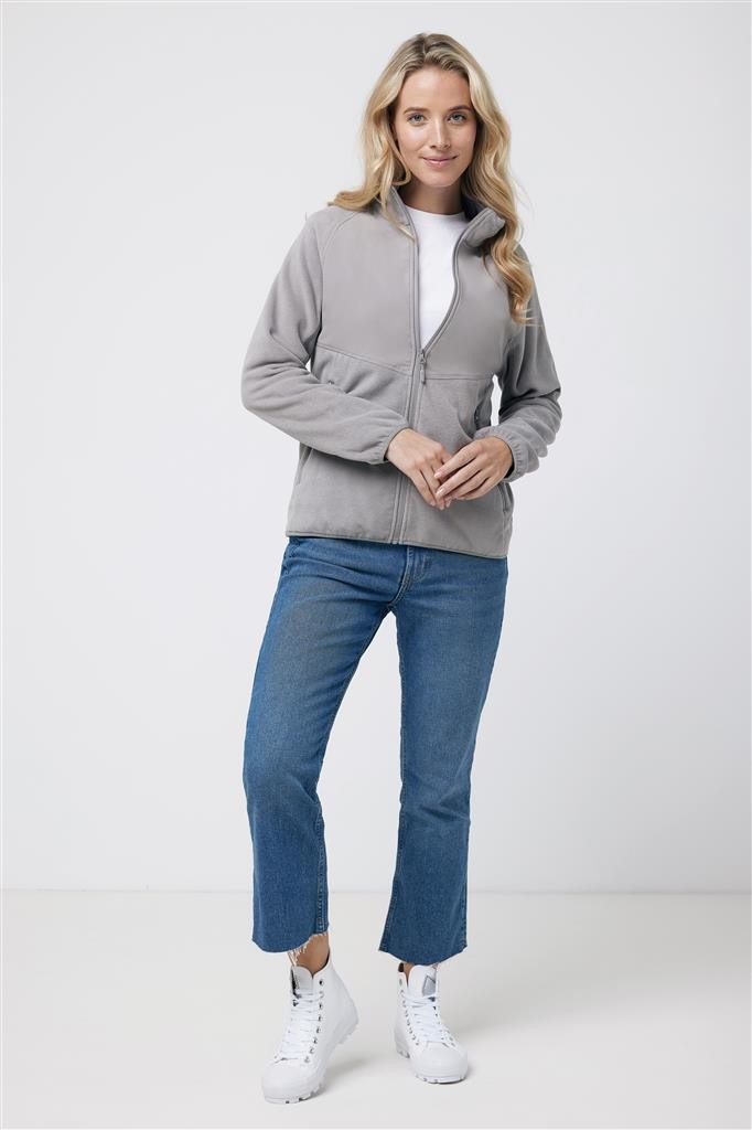 Unisexová mikrofleecová bunda na zip vyrobená ze 100 % post-consumer recyklovaného polyesteru s gramáží 240 g/m² s úpravou proti žmolkování. Reverzní zip na přední straně, boční kapsy na zip integrované do diagonálních švů. Raglánové rukávy, možnost elastického utažení na spodním lemu a manžetách, výrazný horní trojitý plochý steh pro sportovní vzhled. Tkaný panel na hrudní a vnitřní části za krkem nabízí ideální prostor pro značení logem. Obsah recyklovaných materiálů je garantován díky využití technologie AWARE™, která kombinuje možnost skenování materiálu a technologii blockchain. Každý produkt Iqoniq vlastní unikátní štítek s QR kódem, který odkazuje na příslušný digitální pas produktu. 2 % z výtěžku každého prodaného kusu je darováno na Water.org. Certifikováno OEKO-TEX® STANDARD 100 2303045 Centexbel.