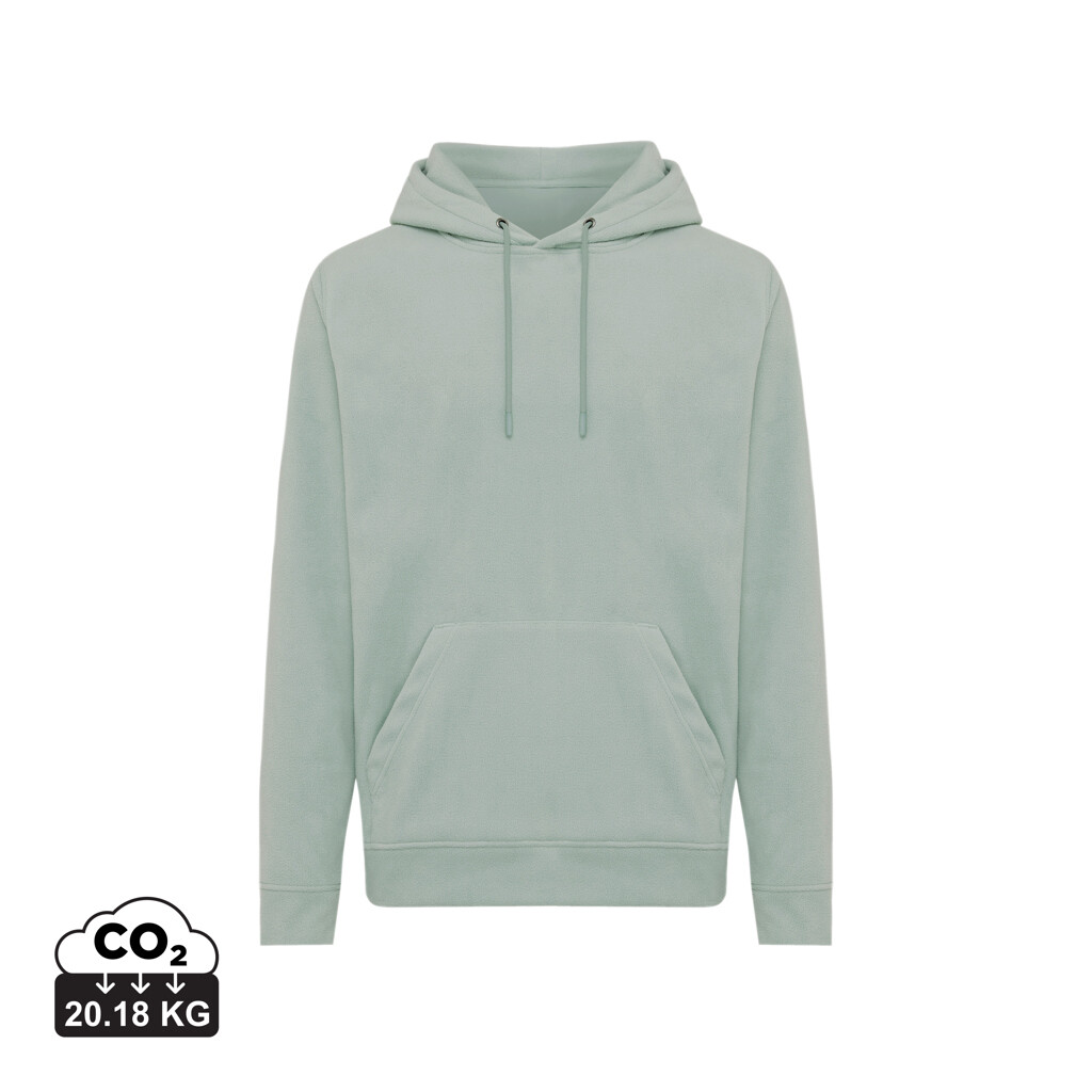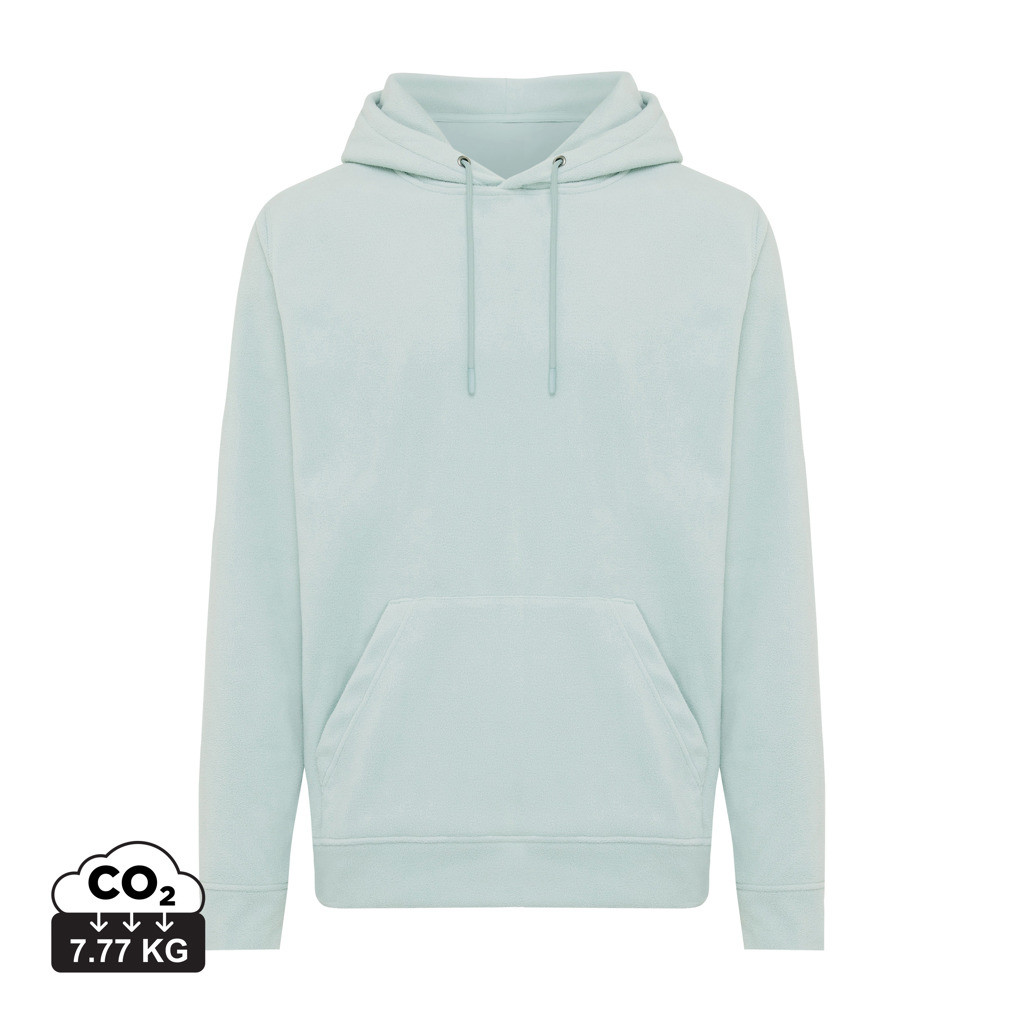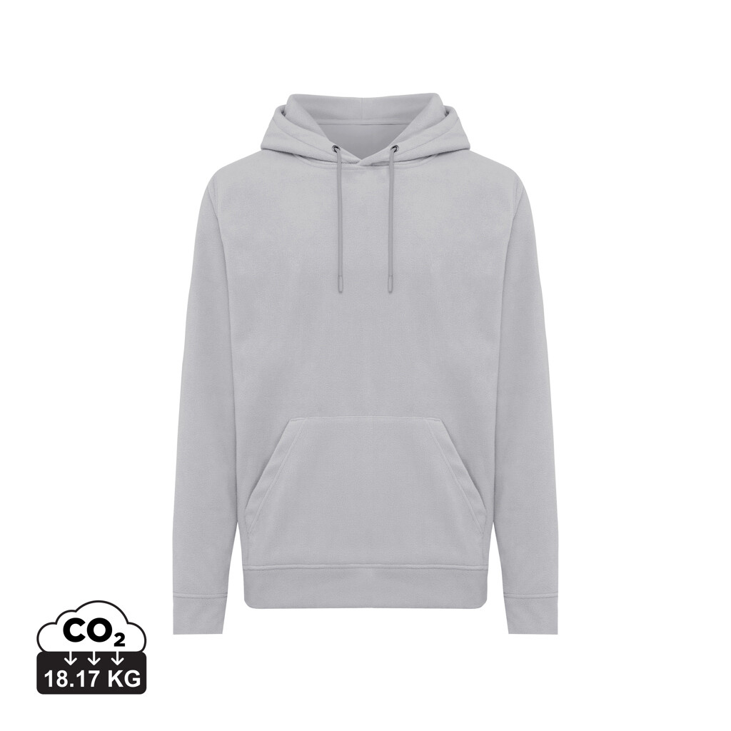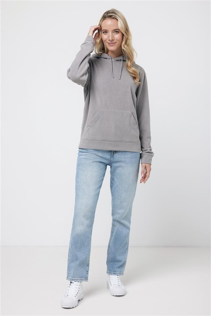 Unisexová mikrofleecová mikina vyrobená ze 100 % post-consumer recyklovaného polyesteru s gramáží 240 g/m². Praktická klokaní kapsa, dvouvrstvá kapuce s tónovanou šňůrkou a kovovými očky. Spodní lem a manžety rukávů jsou vyrobeny z vlastní tkaniny pro extra měkkost. Tkaný půlměsíc na vnitřní části za krkem nabízí ideální prostor pro značení logem. Obsah recyklovaných materiálů je garantován díky využití technologie AWARE™, která kombinuje možnost skenování materiálu a technologii blockchain. Každý produkt Iqoniq vlastní unikátní štítek s QR kódem, který odkazuje na příslušný digitální pas produktu. 2 % z výtěžku každého prodaného kusu je darováno na Water.org. Certifikováno OEKO-TEX® STANDARD 100 2303045 Centexbel.
