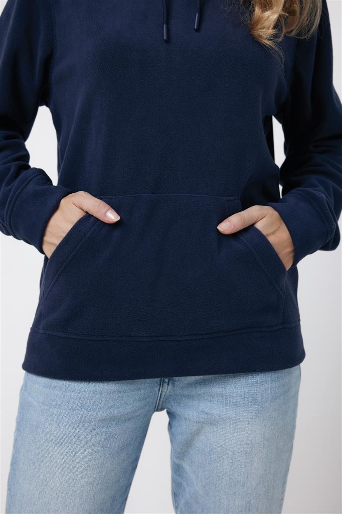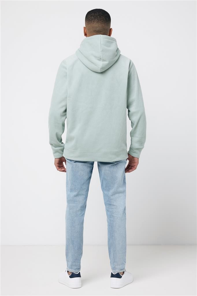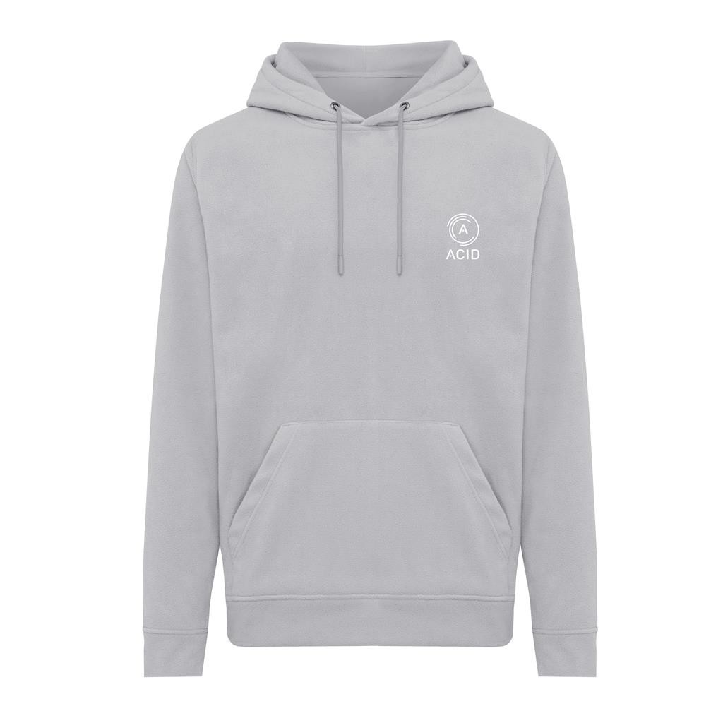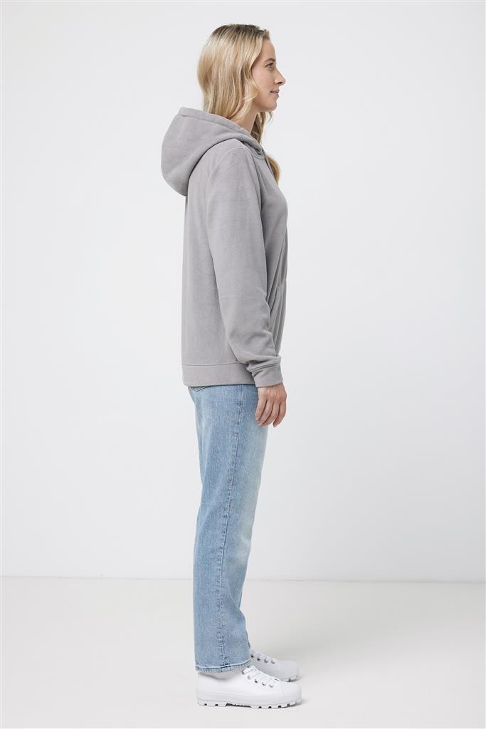 Unisexová mikrofleecová mikina vyrobená ze 100 % post-consumer recyklovaného polyesteru s gramáží 240 g/m². Praktická klokaní kapsa, dvouvrstvá kapuce s tónovanou šňůrkou a kovovými očky. Spodní lem a manžety rukávů jsou vyrobeny z vlastní tkaniny pro extra měkkost. Tkaný půlměsíc na vnitřní části za krkem nabízí ideální prostor pro značení logem. Obsah recyklovaných materiálů je garantován díky využití technologie AWARE™, která kombinuje možnost skenování materiálu a technologii blockchain. Každý produkt Iqoniq vlastní unikátní štítek s QR kódem, který odkazuje na příslušný digitální pas produktu. 2 % z výtěžku každého prodaného kusu je darováno na Water.org. Certifikováno OEKO-TEX® STANDARD 100 2303045 Centexbel.